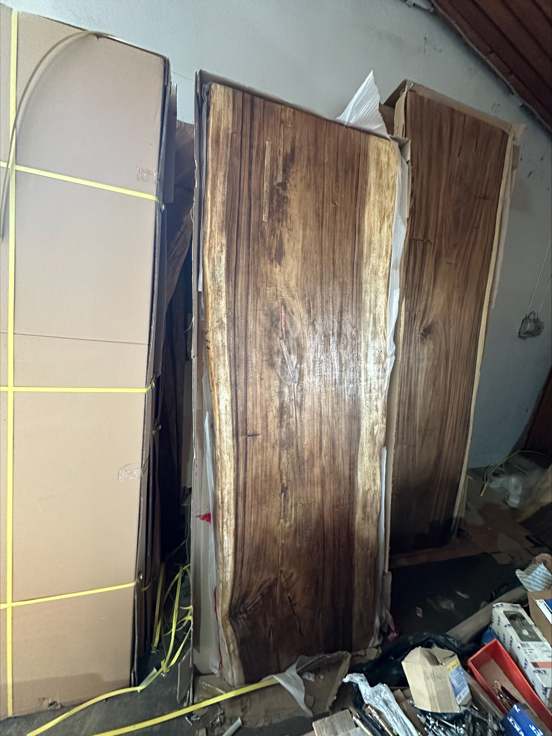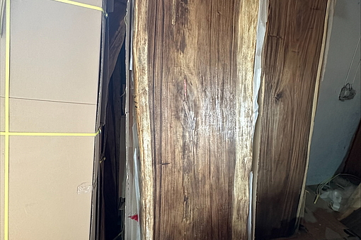 Plankebord i massivt træ ca. 200x85cm. Skåret af et enkelt stykke træ. Tykkelse ca. 77mm. Med understel.