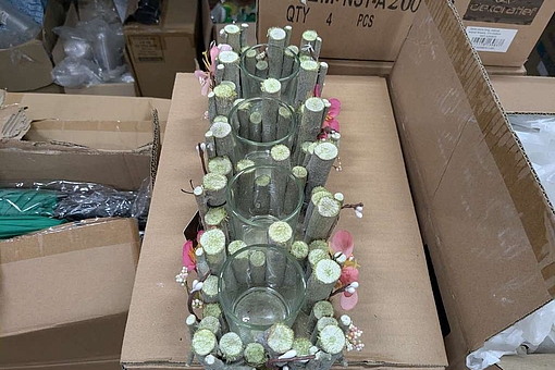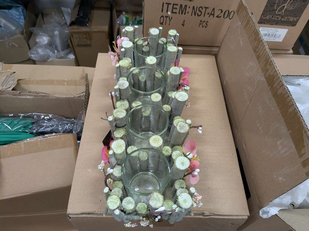 8. 16 stk. fyrfadsstager i træ og glas