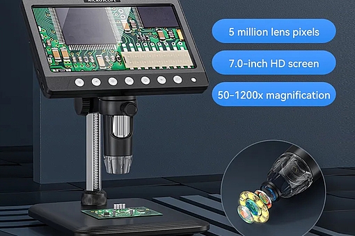 8. USB-mikroskop med 7" skærm. 50-1200 x forstørrelse