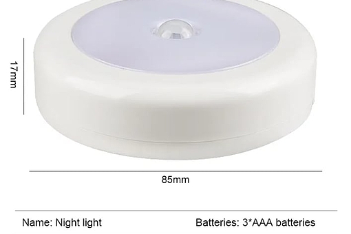 Lampen drives af 3 stk. AAA-batterier (medfølger ikke) og tænder automatisk, når den registrerer bevægelse i mørke (inden for 3–5 meter og 120° vinkel). Den slukker automatisk efter 20 sekunder for at spare batteri.