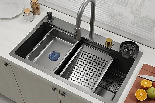 Moderne og multifunktionel køkkenvask designet til at passe perfekt ind i et køkken med stilrent udtryk og høj funktionalitet.