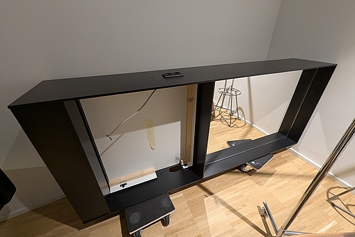127. Frisørspejle monteret i kasse