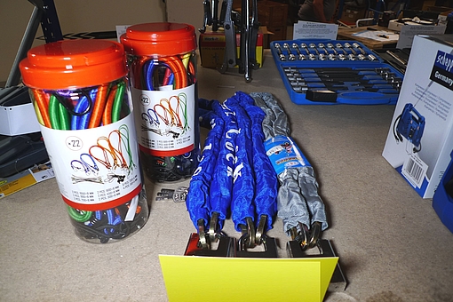 521. 4 stk. kraftige kædelåse + 2x 22 stk. bagageremme