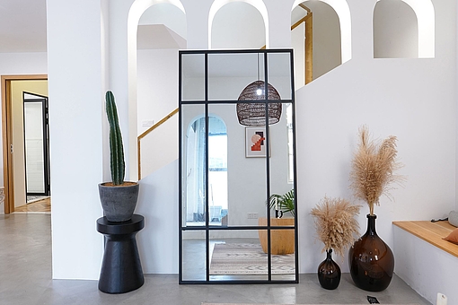 13. Spejl med sort ramme i jern str 170x80cm, GWM06B