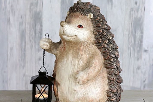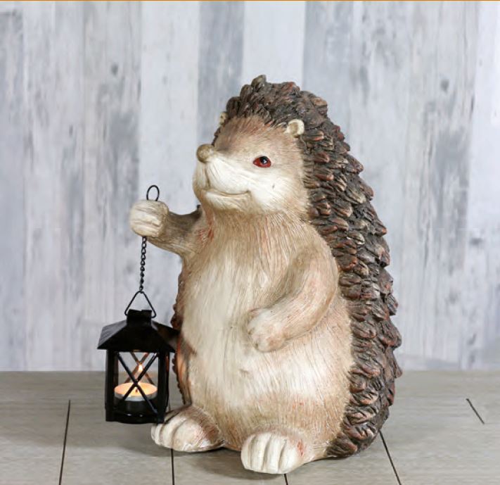 3 stk. Pindsvin havestatue.H 34,5 x B 26 x L 22 cm, magnesia, med lanterne