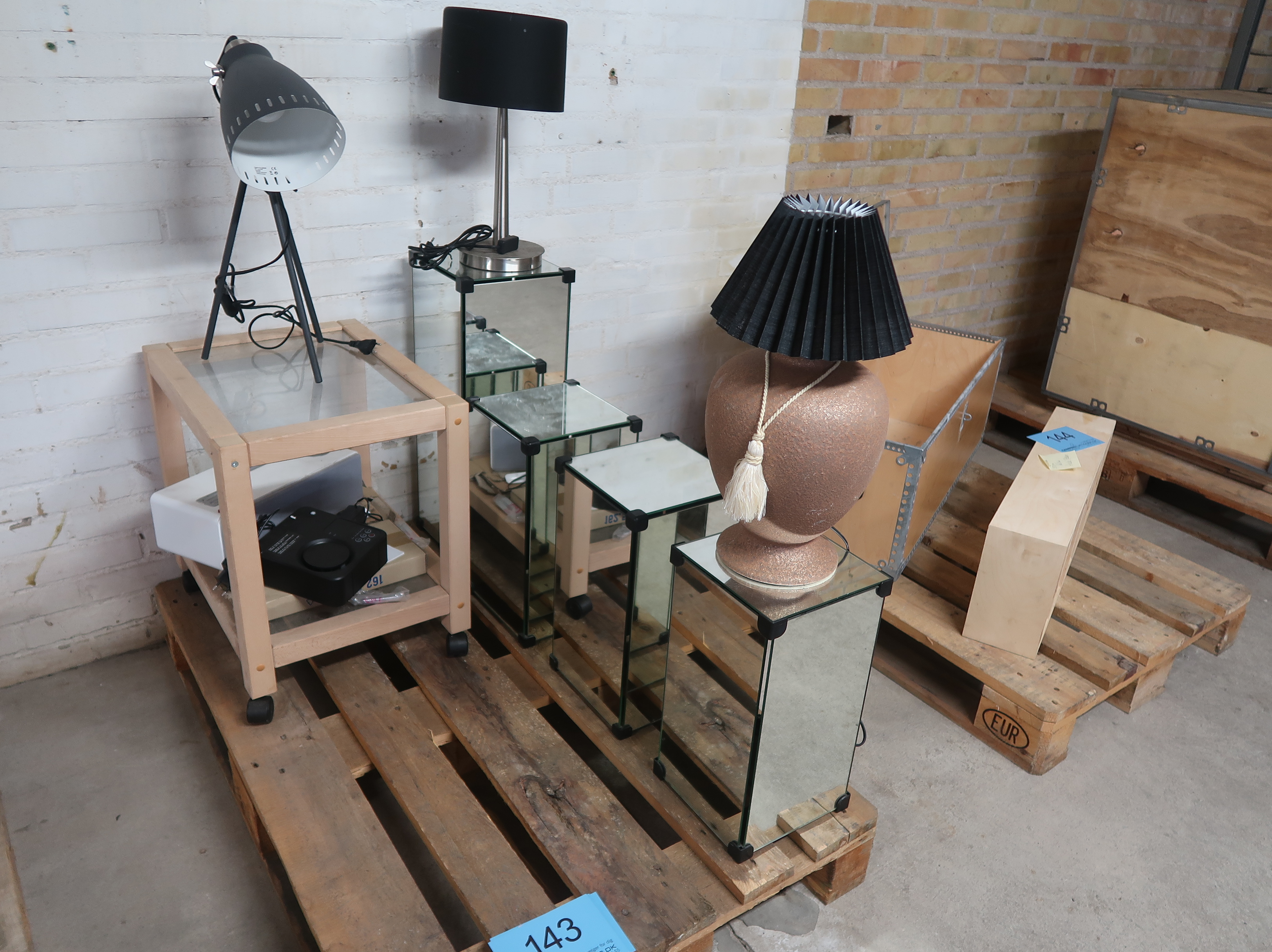 143. Lille bord med bordlampe samt spejlpodier MOMSFRI