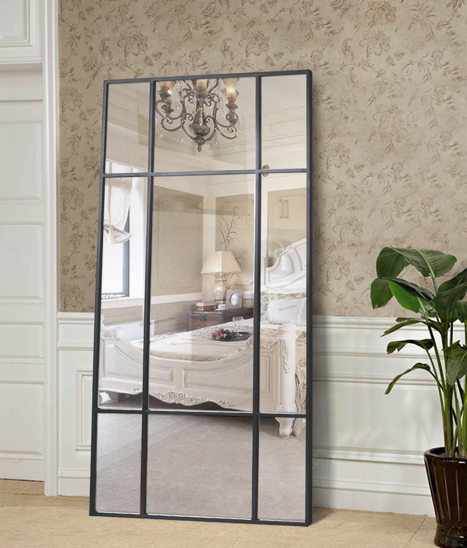 4. Spejl m. sort ramme i jern, 180x90cm, GWM03B