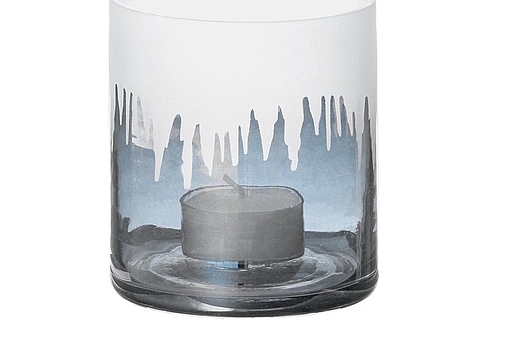 Parti med 14 stk. fyrfadsstager i blåt glas. 8 stk i H10cm og 6 stk i H18 cm.