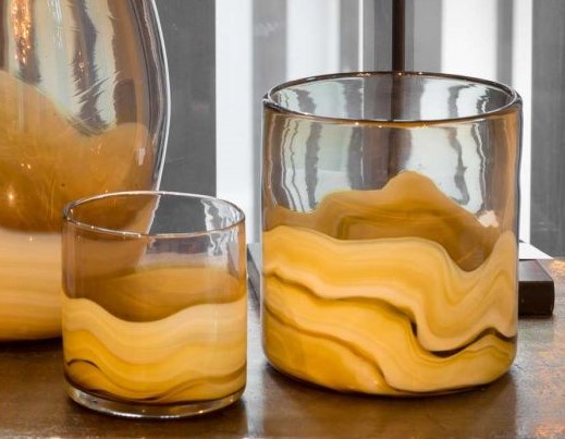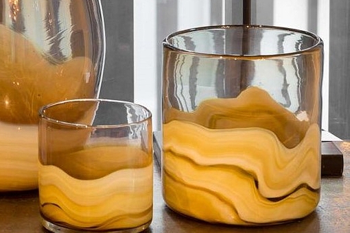 Parti med 6 stk lysestager i glas. 4 stk i H10cm og 2 stk i H15cm.