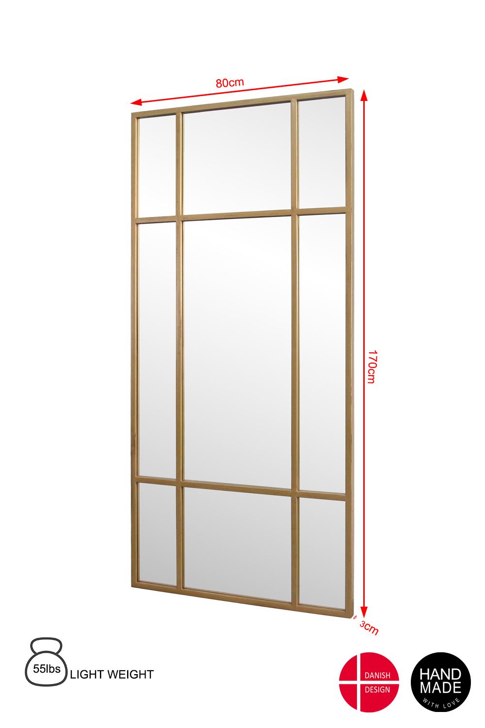 14. Spejl m. guldfarvet ramme 170x80cm, GWM06AG