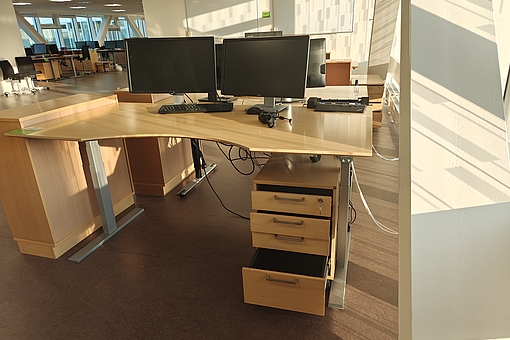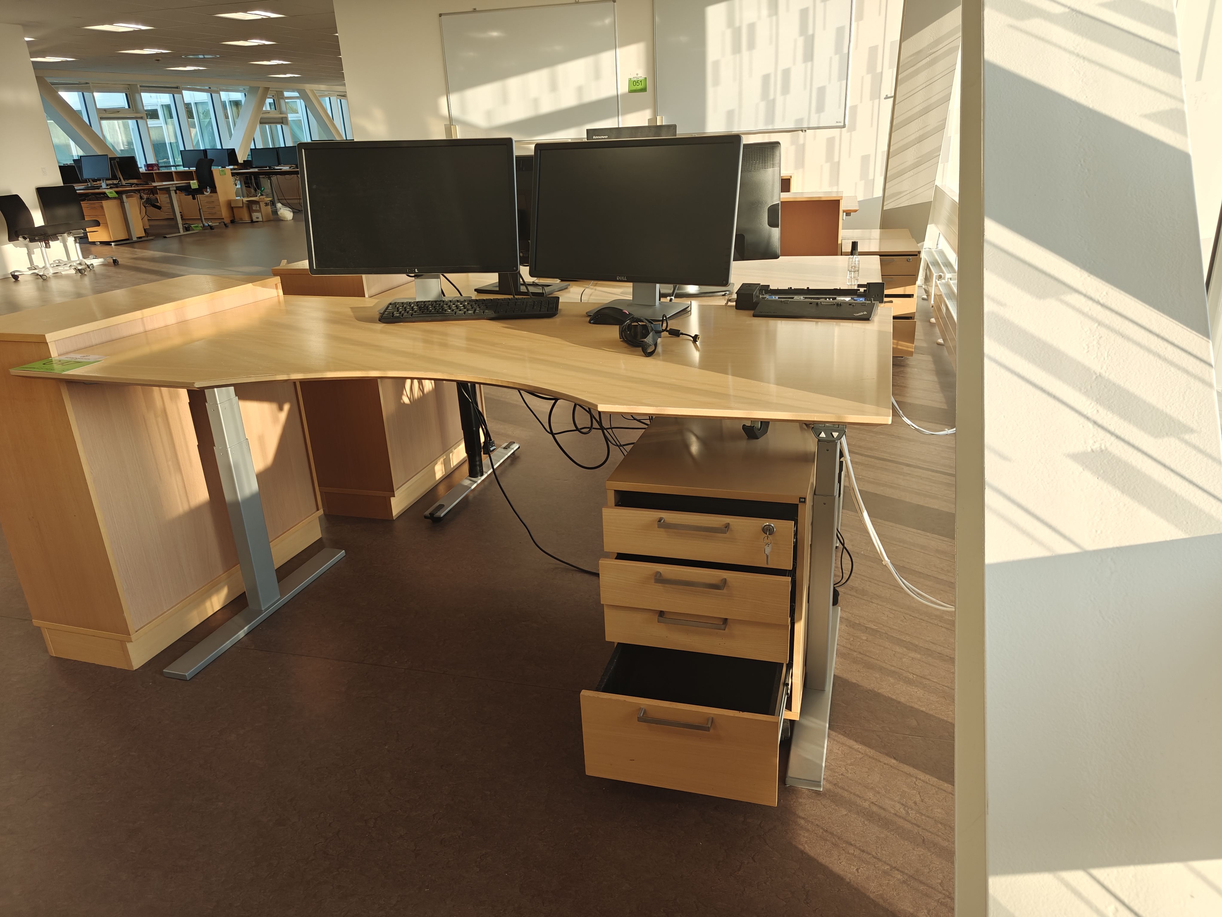 47. Hæve-/sænkebord, skab, skærme & tastatur.