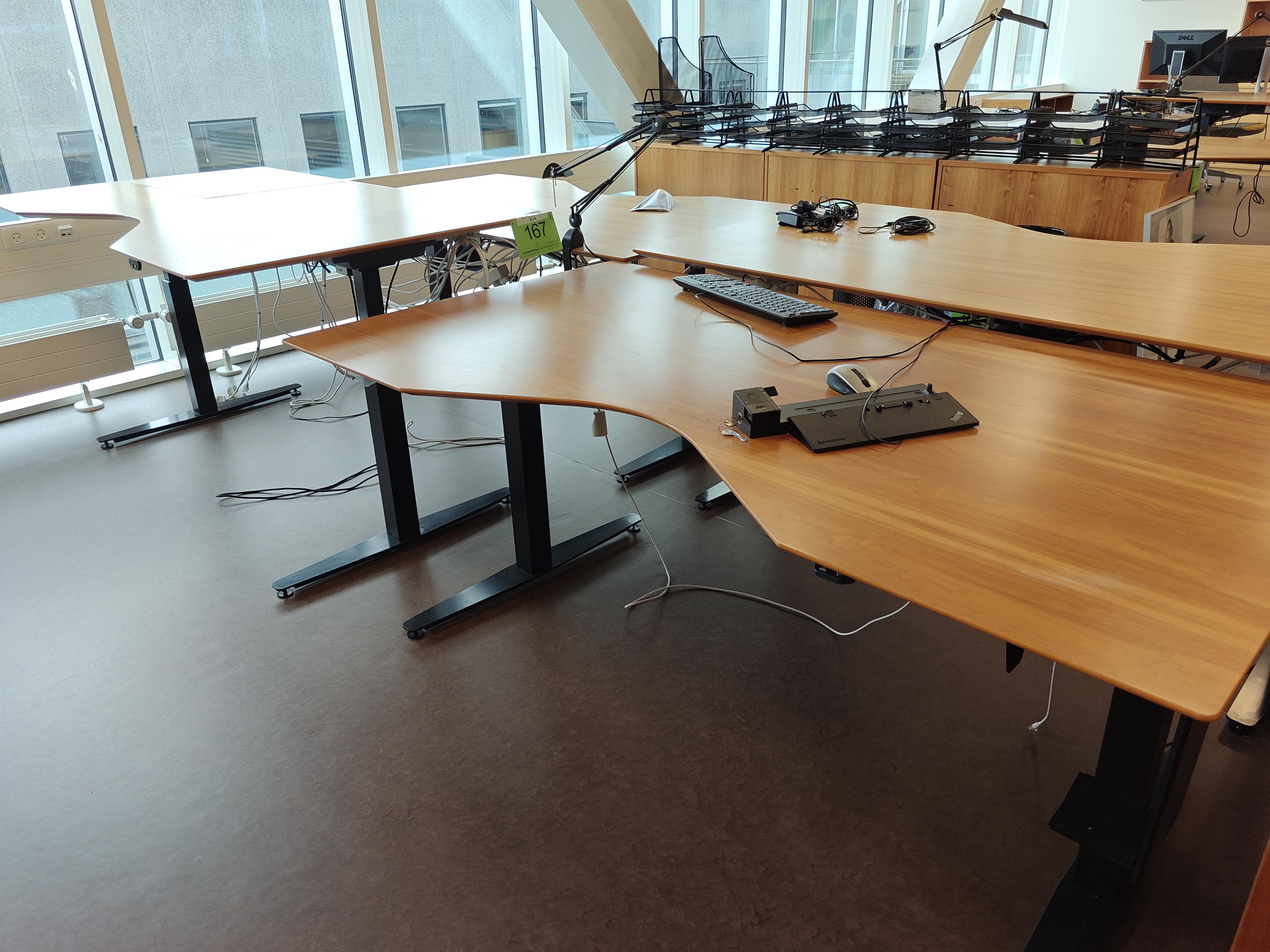 167. 2 Hæve-/sænkeskriveborde, tastatur mm.