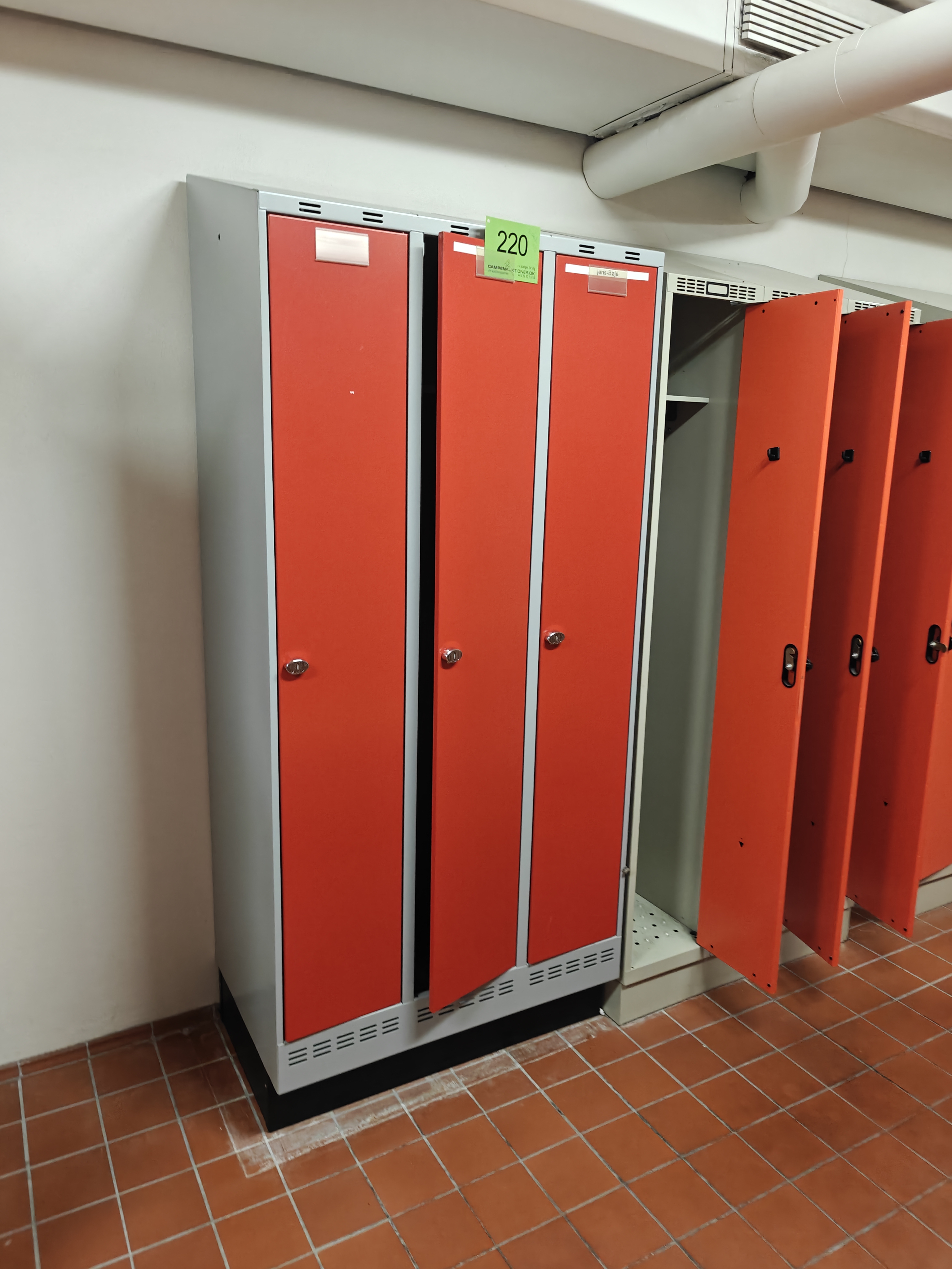 220. 4 stk Omklædningsskabe m/3 låger. Mrk Blika.