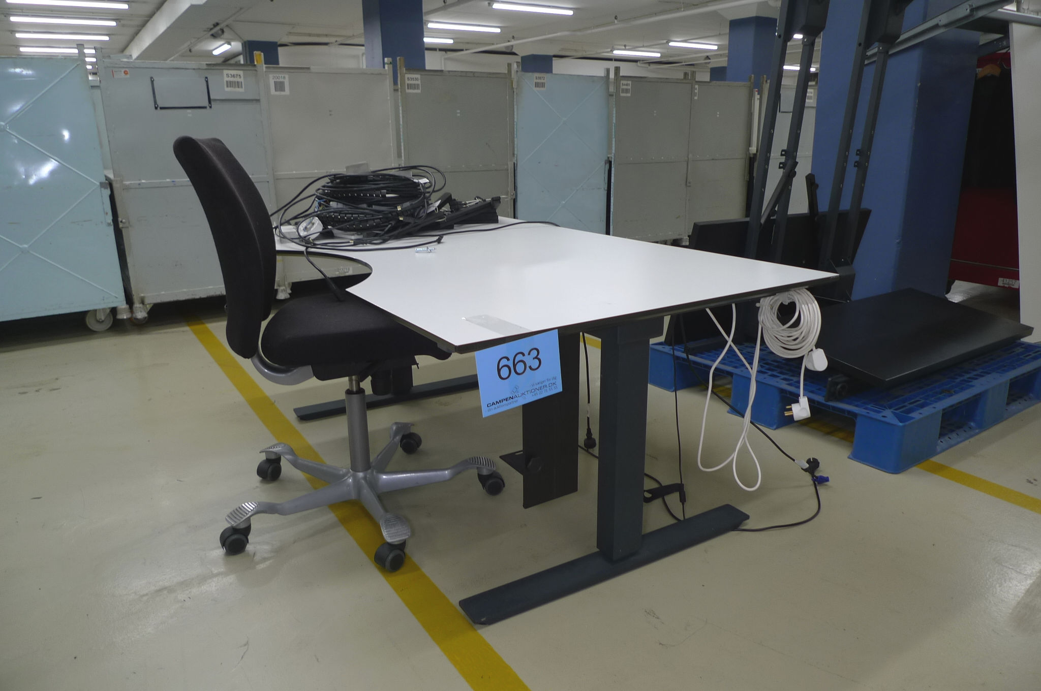 663. Hæve-/sænke bord, elek. 160x90cm + kontorstol