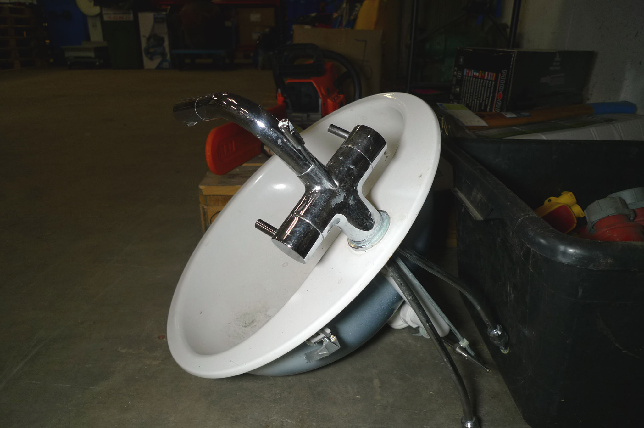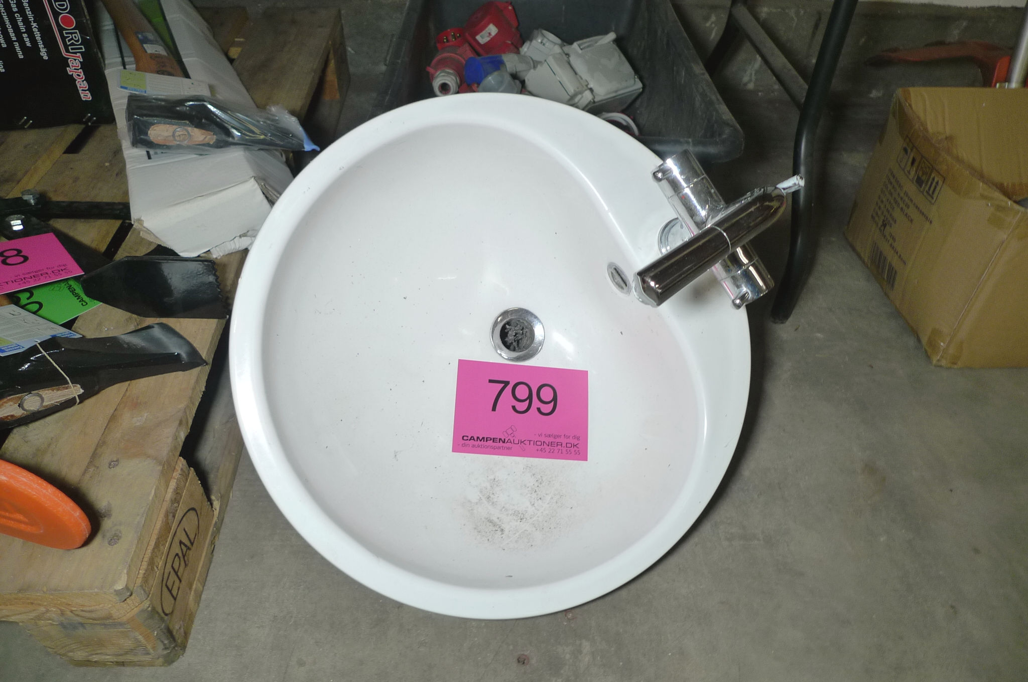 799. Vask m/armatur ca. ø47cm + ks. m/kraftstik