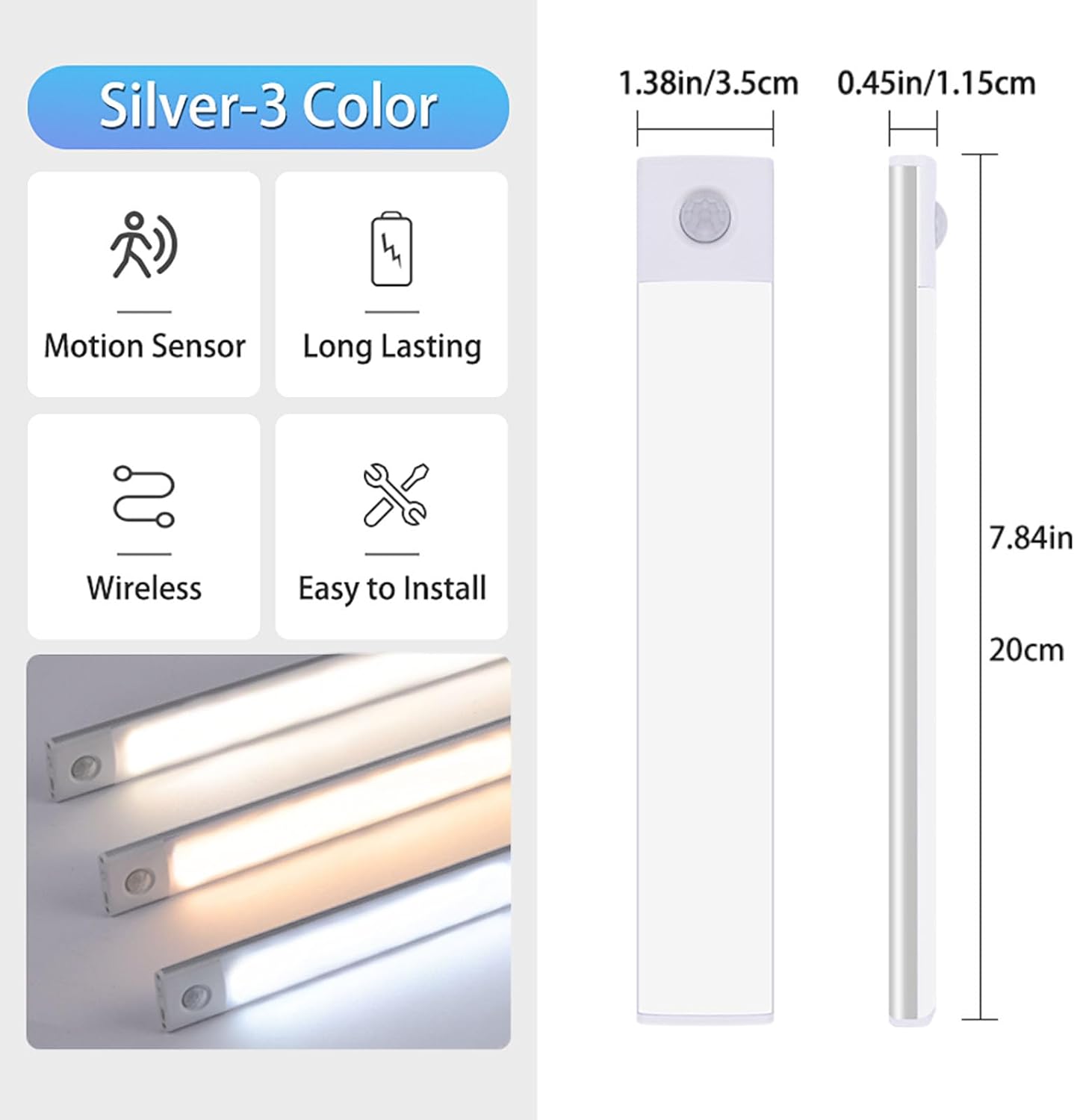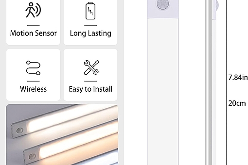 Elegant og kraftfuld LED-lampe med bevægelsessensor på hele 50 cm – ideel til større rum som garderober, skabe eller som ekstra belysning i køkkenet. Nem justering af både lysstyrke og farvetemperatur med et enkelt tryk.