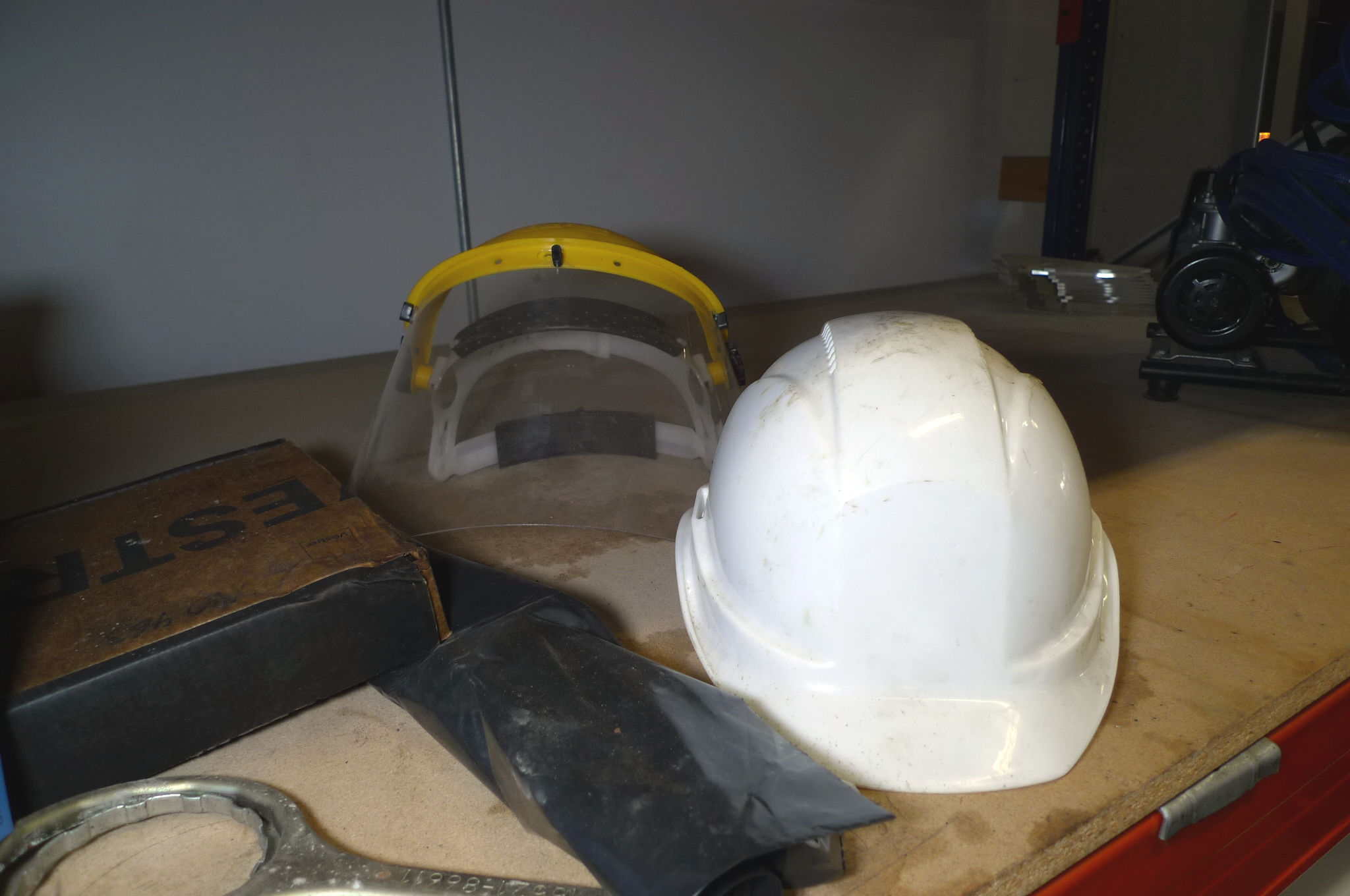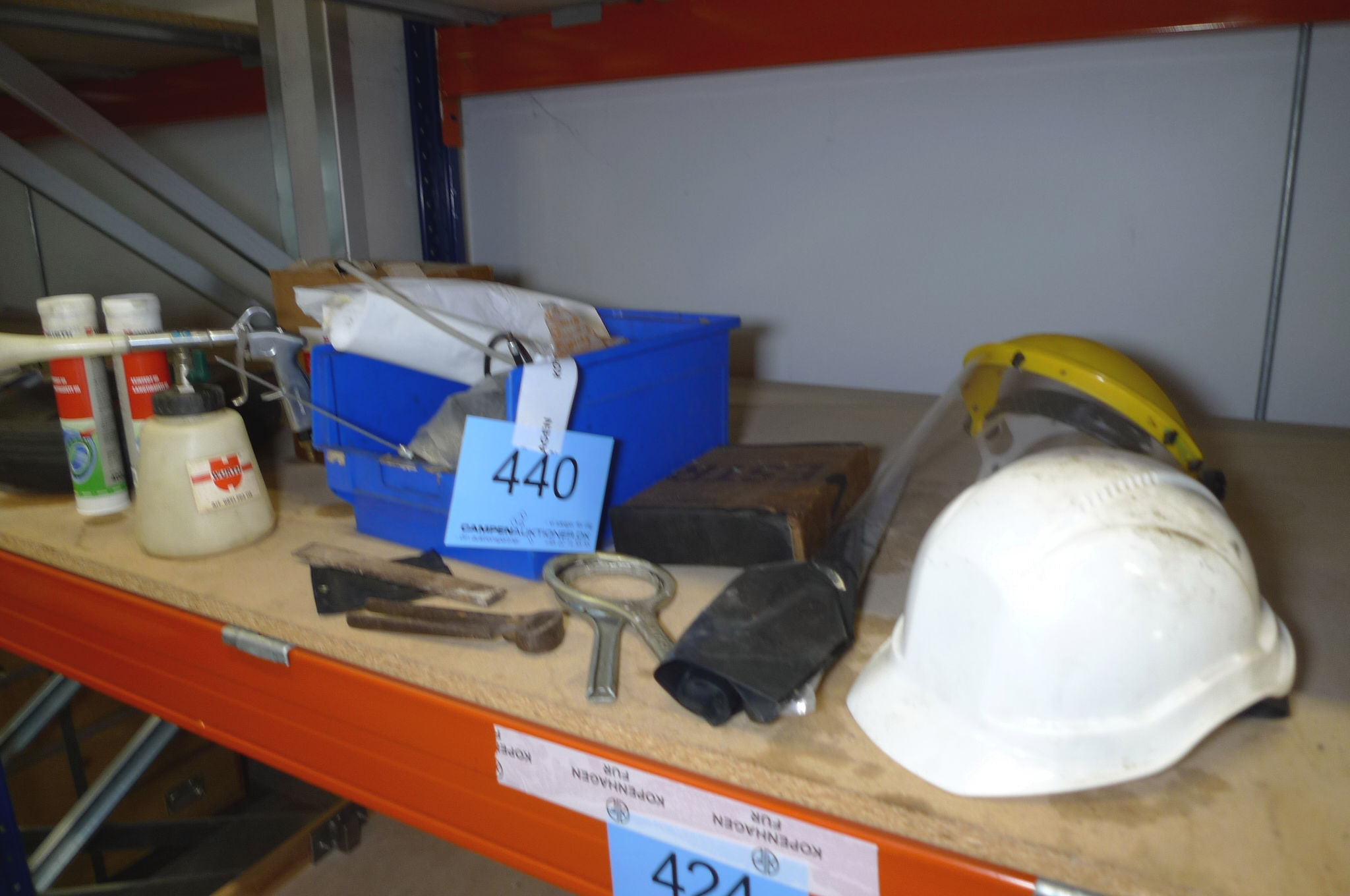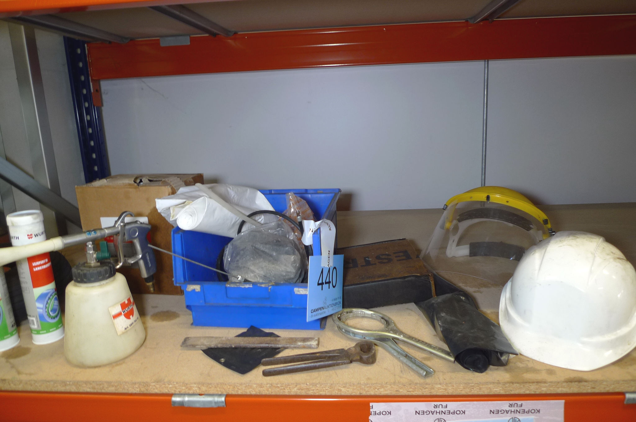 440. 8 stk. Würth lejefedt, sikkerhedshjelm + visir, malersprøjte