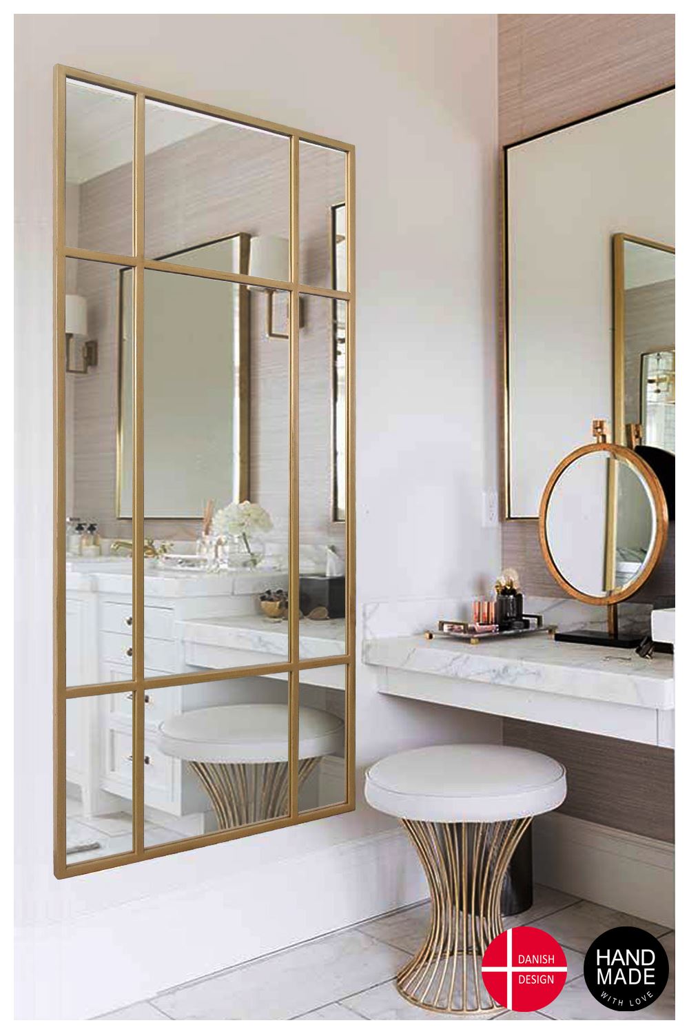 253. 7 stk. spejle m. guldfarvet ramme 170x80cm, GWM06AG
