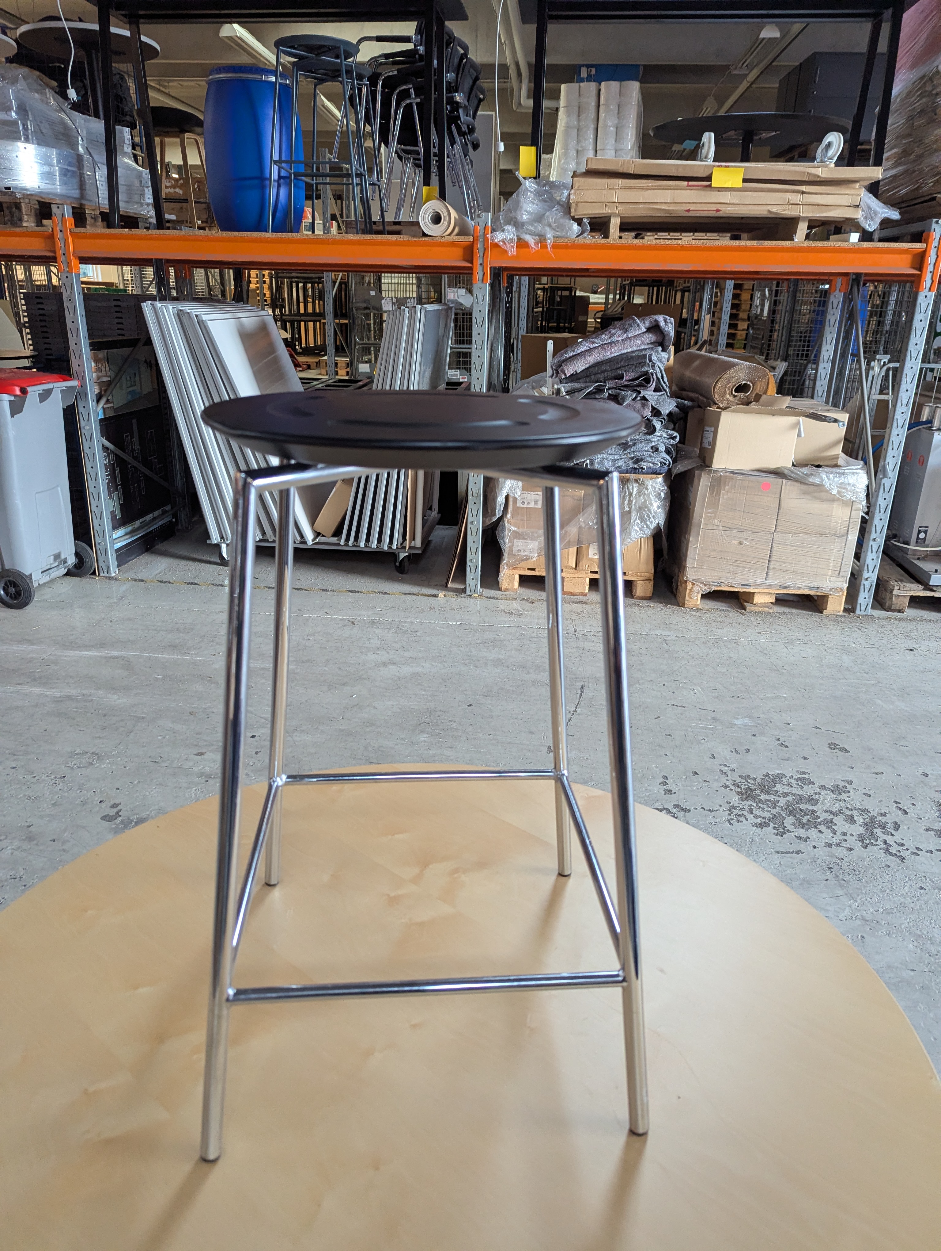 616. 4 Stk. Randers +Radius barstol m/Sort plast sæde og krom stel , Lav model H 65 cm. Ca.