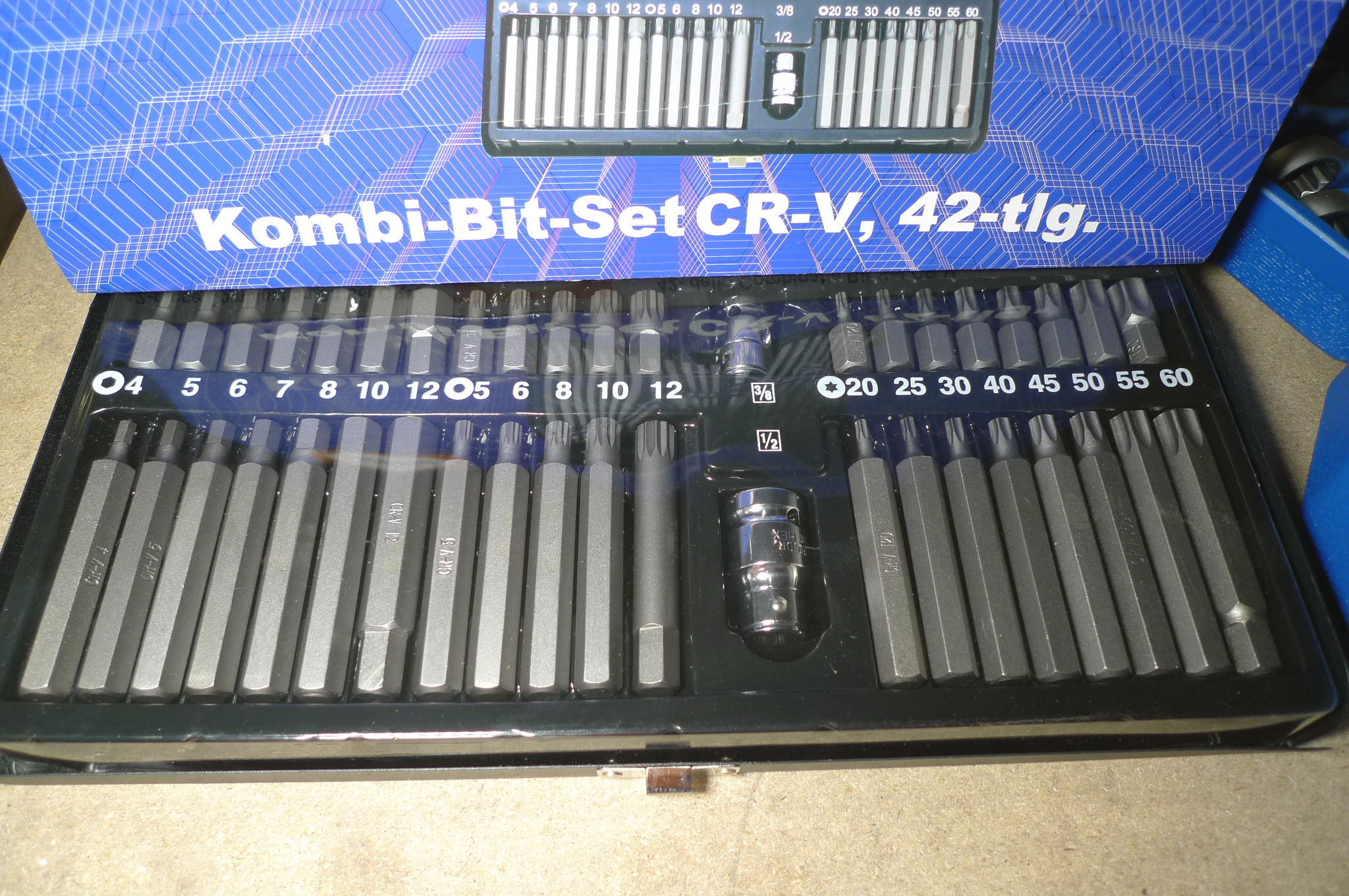42 dele bitssæt, lange + 16 dele toppe 8-24mm. Ubrugt.
