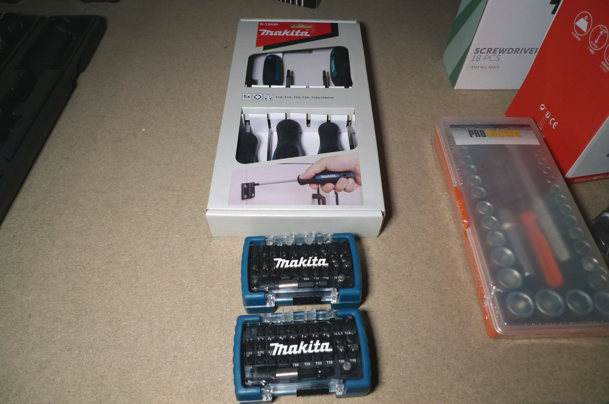 5 dele Torx-skruetrækkersæt, T10, T15, T20, T25 og T30 x100mm + 2 stk. bitssæt á 32 dele. Ubrugt.