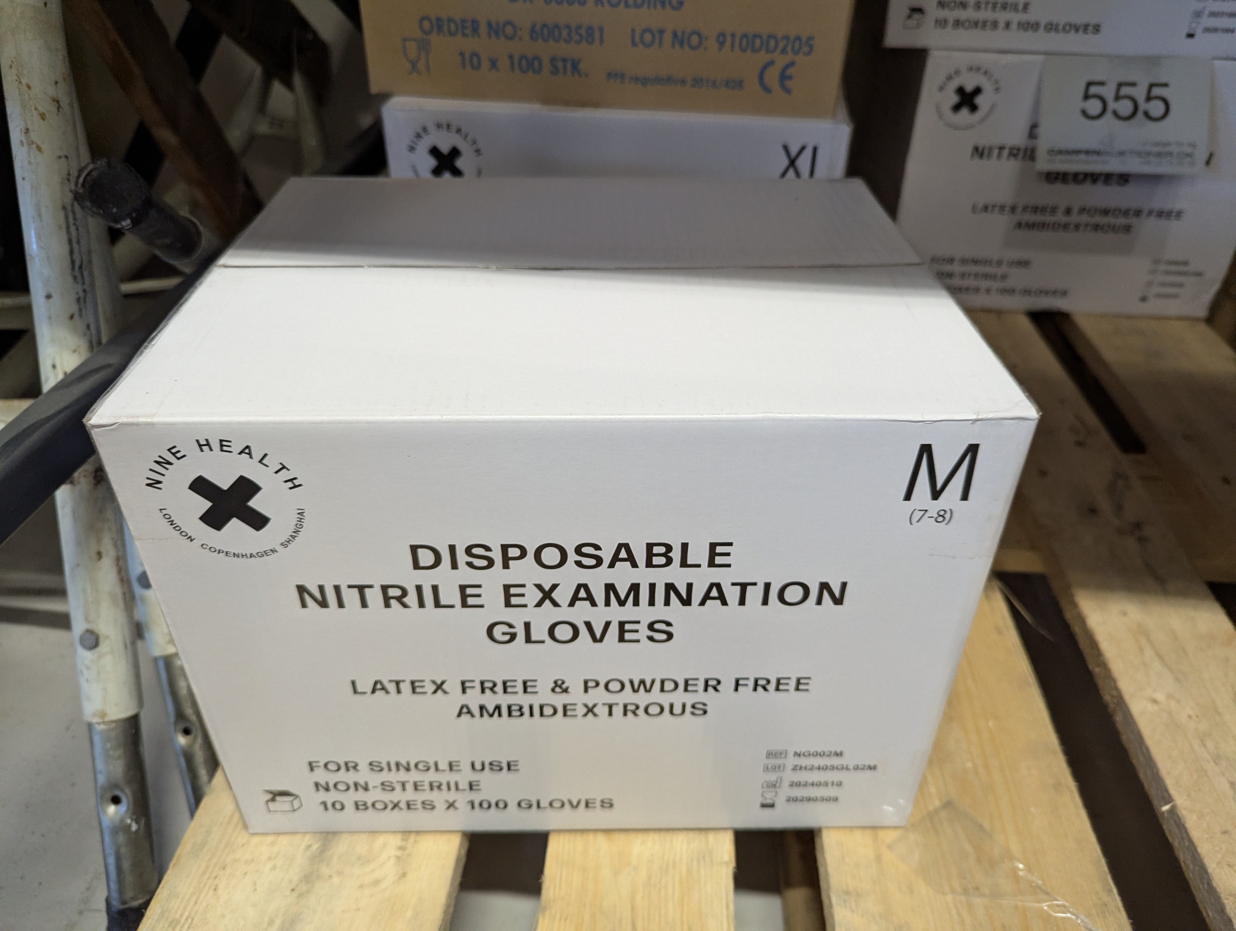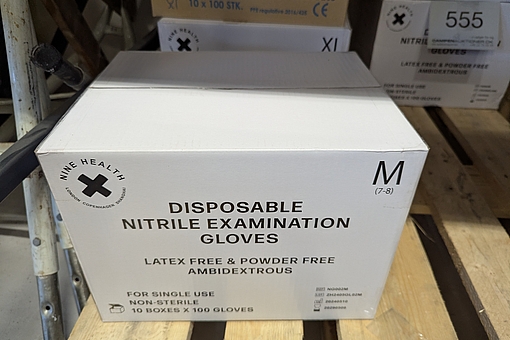 557. 1 kasse med engangs Latex handsker str. M