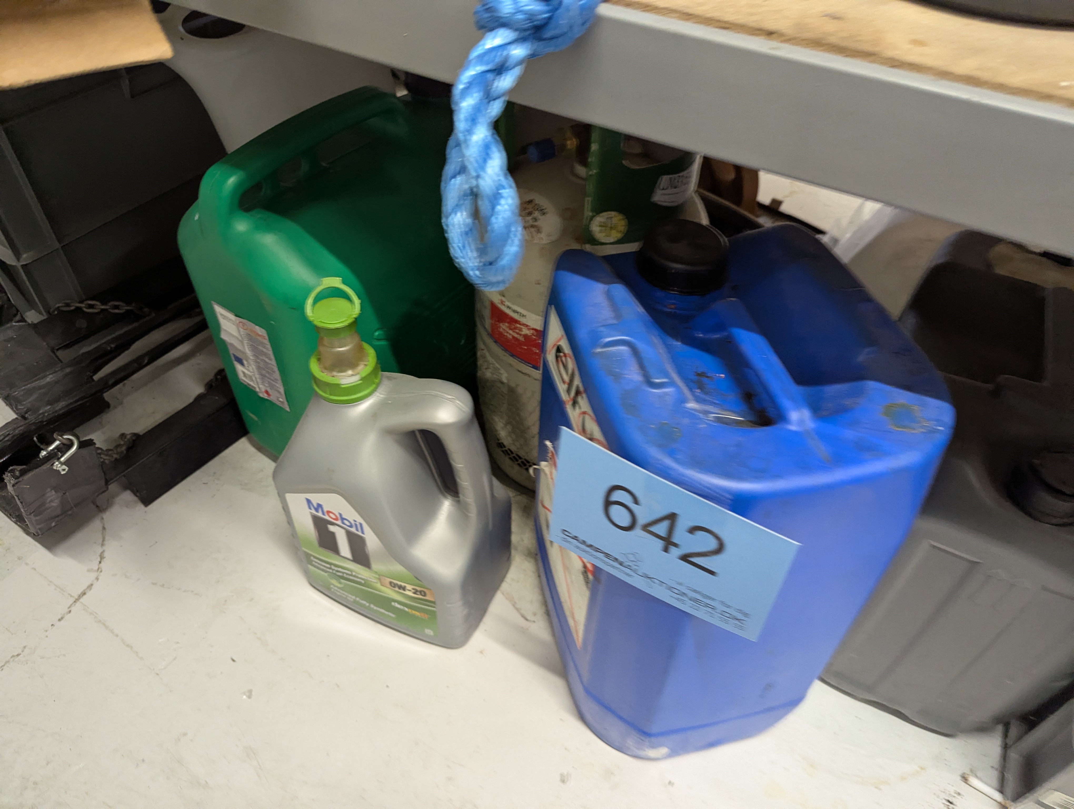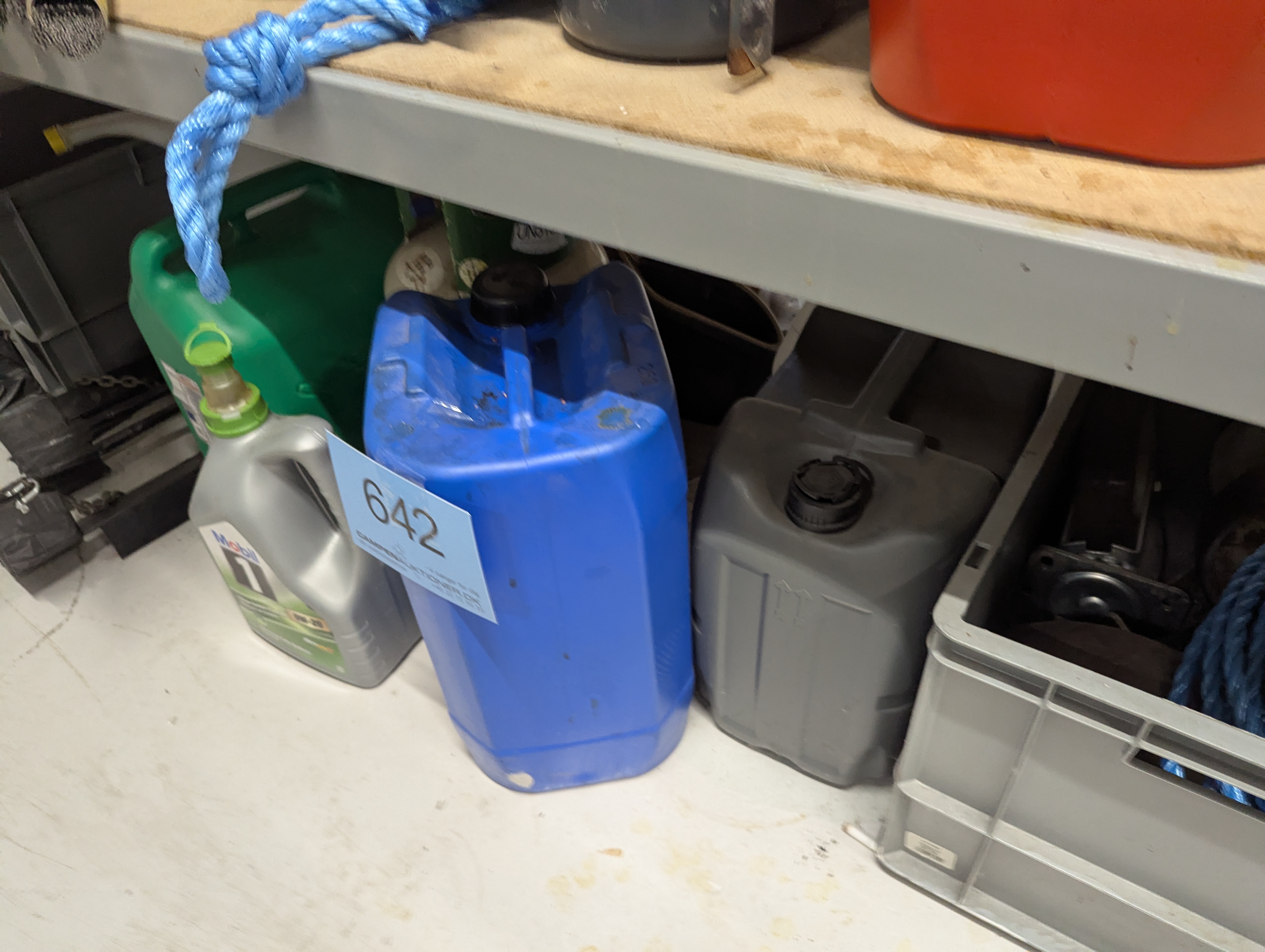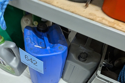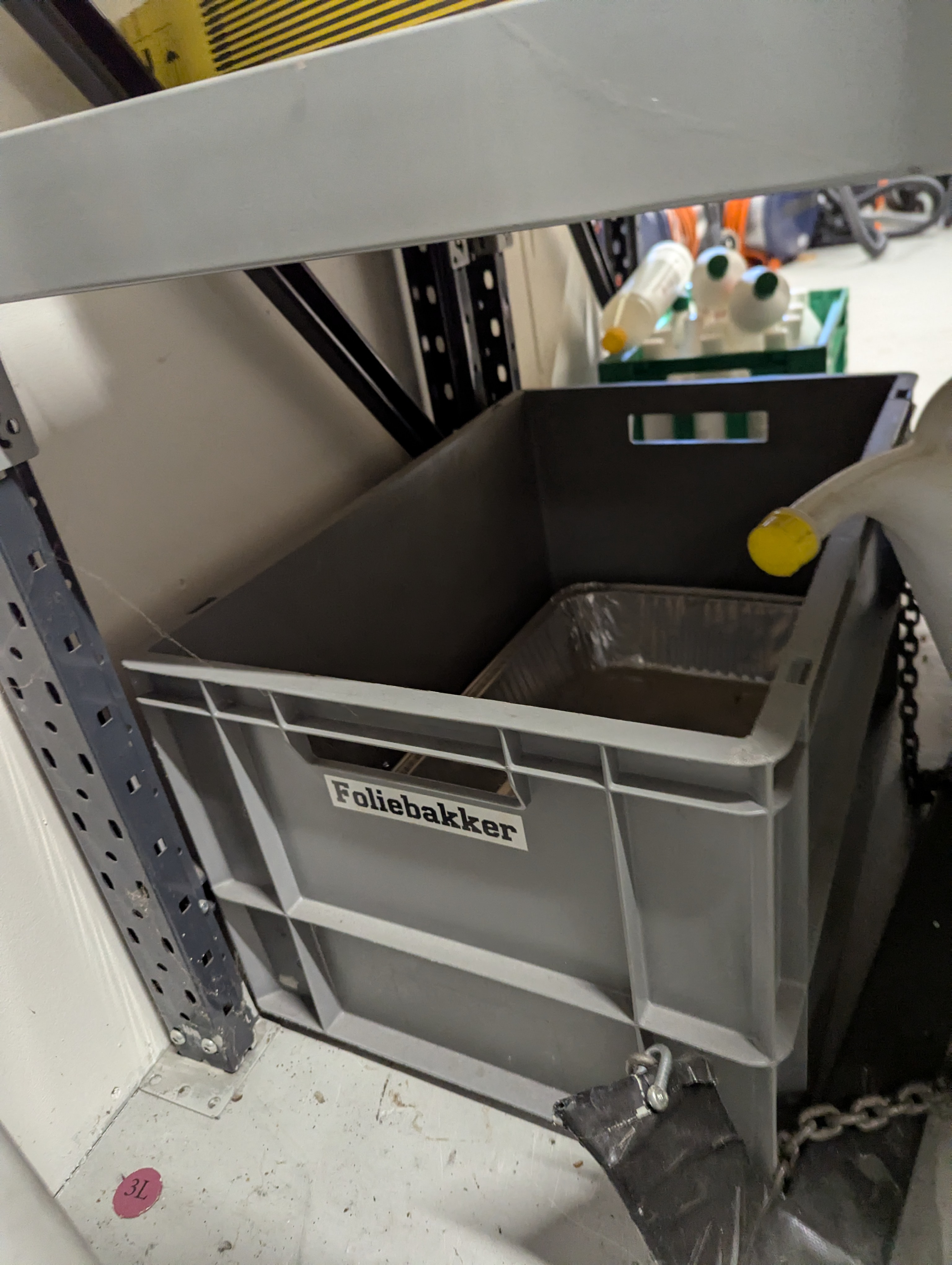 642. Oprydning på gulv. Dunke med og uden indhold