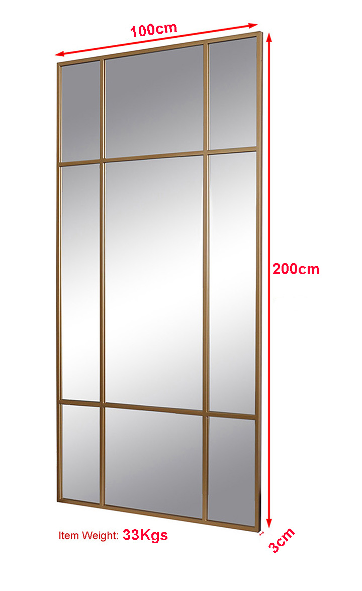 668. 1 stk. spejl med guldfarvet ramme 100 x 200 cm