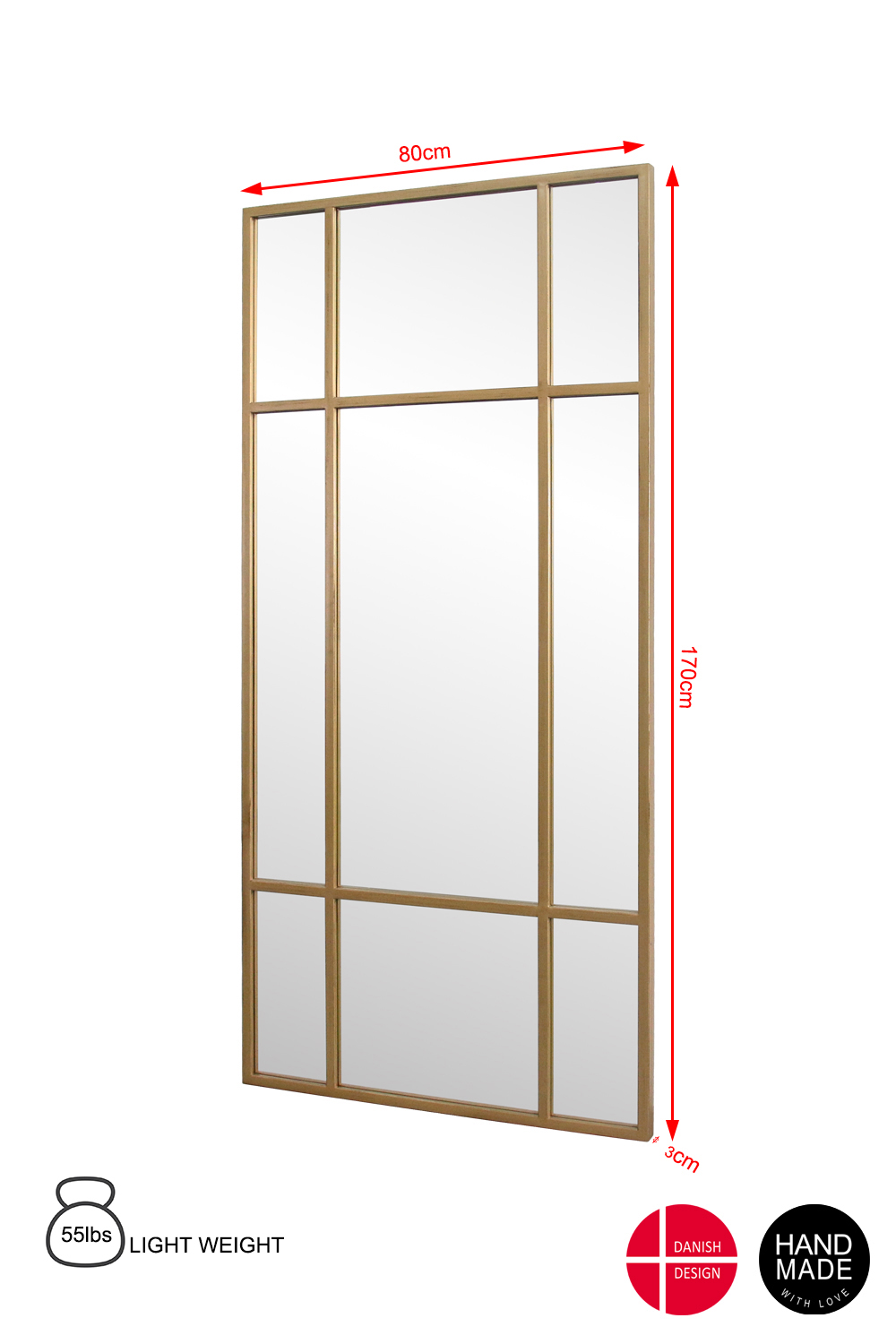 673. 5 stk. spejl antik guldfarvet ramme 80 x 170 cm