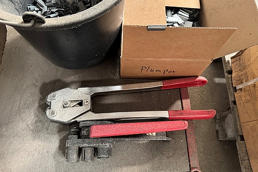 1. Båndmaskine med 6 nye ruller plastbånd