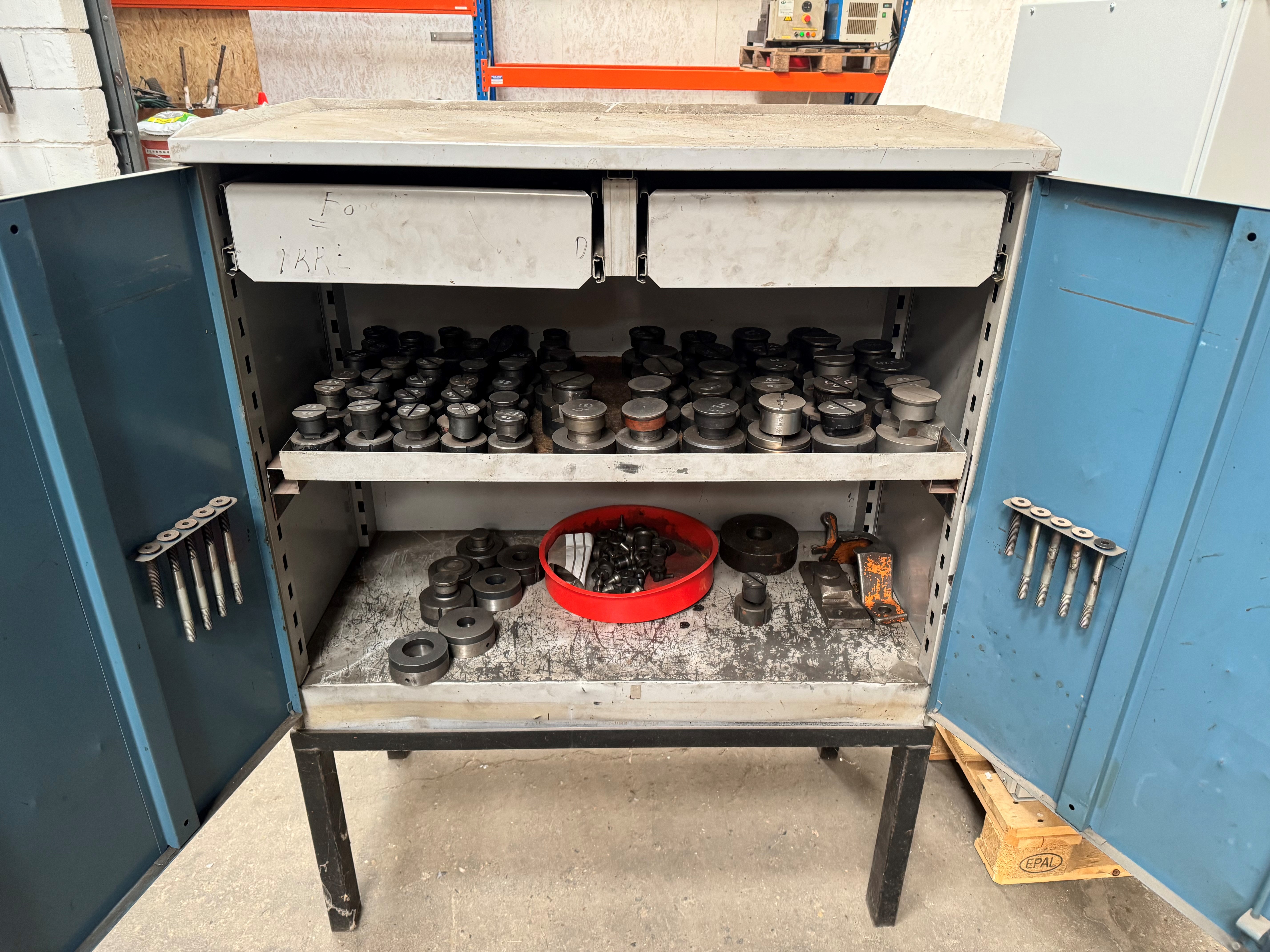 2. Pladelokker Pedinghuse med mange værktøjer inkl. skab