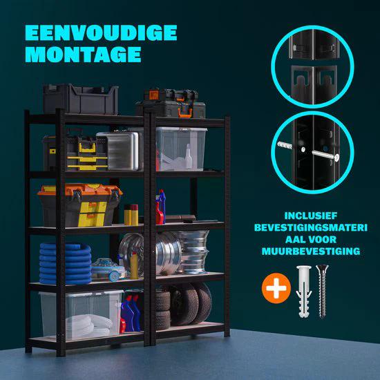 850. 2 kraftige reoler, 875 kg, 180x90x40 cm, sort