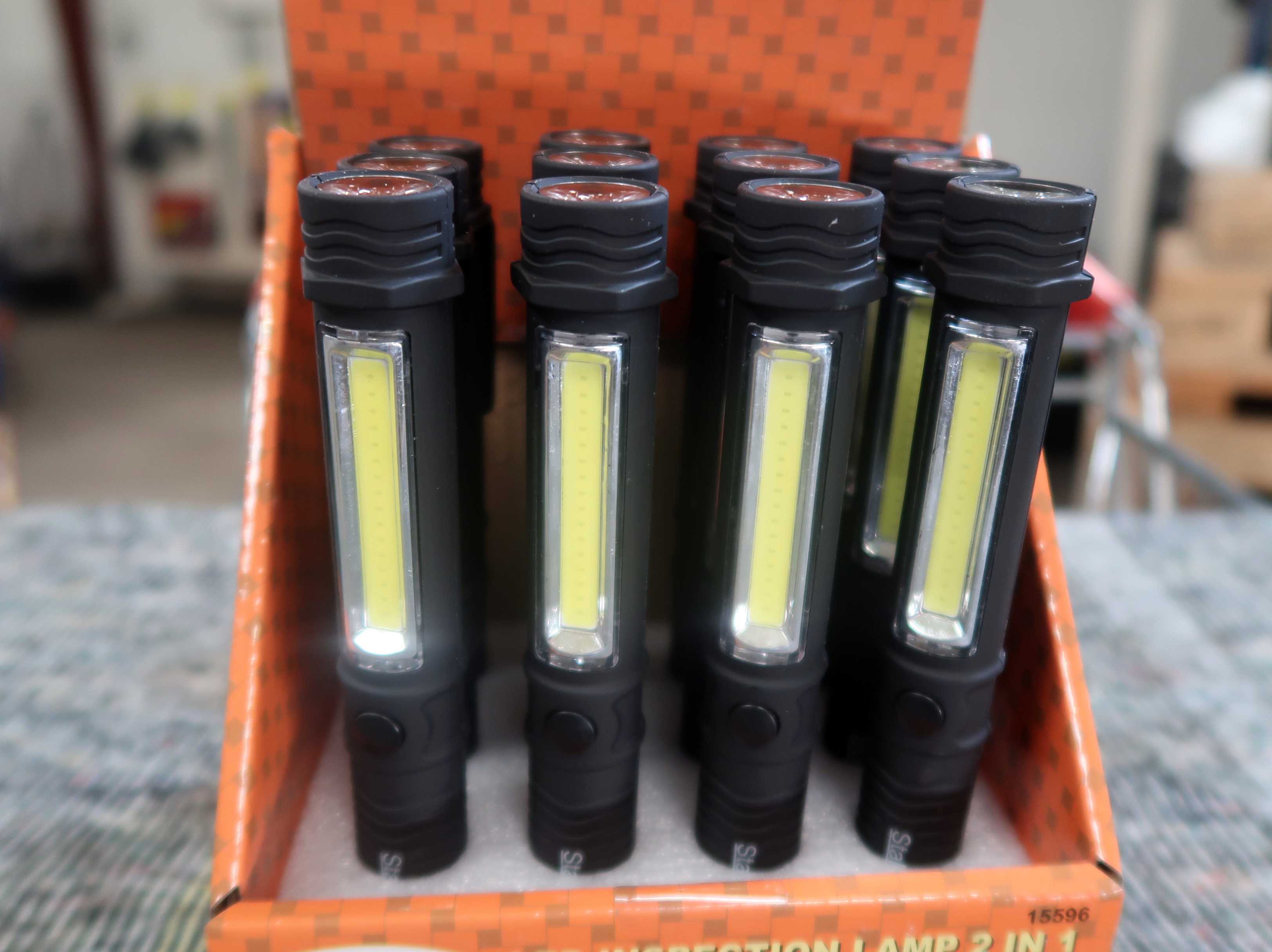 667. 12 stk. LED inspektionslamper 2-i-1 i salgsdisplay