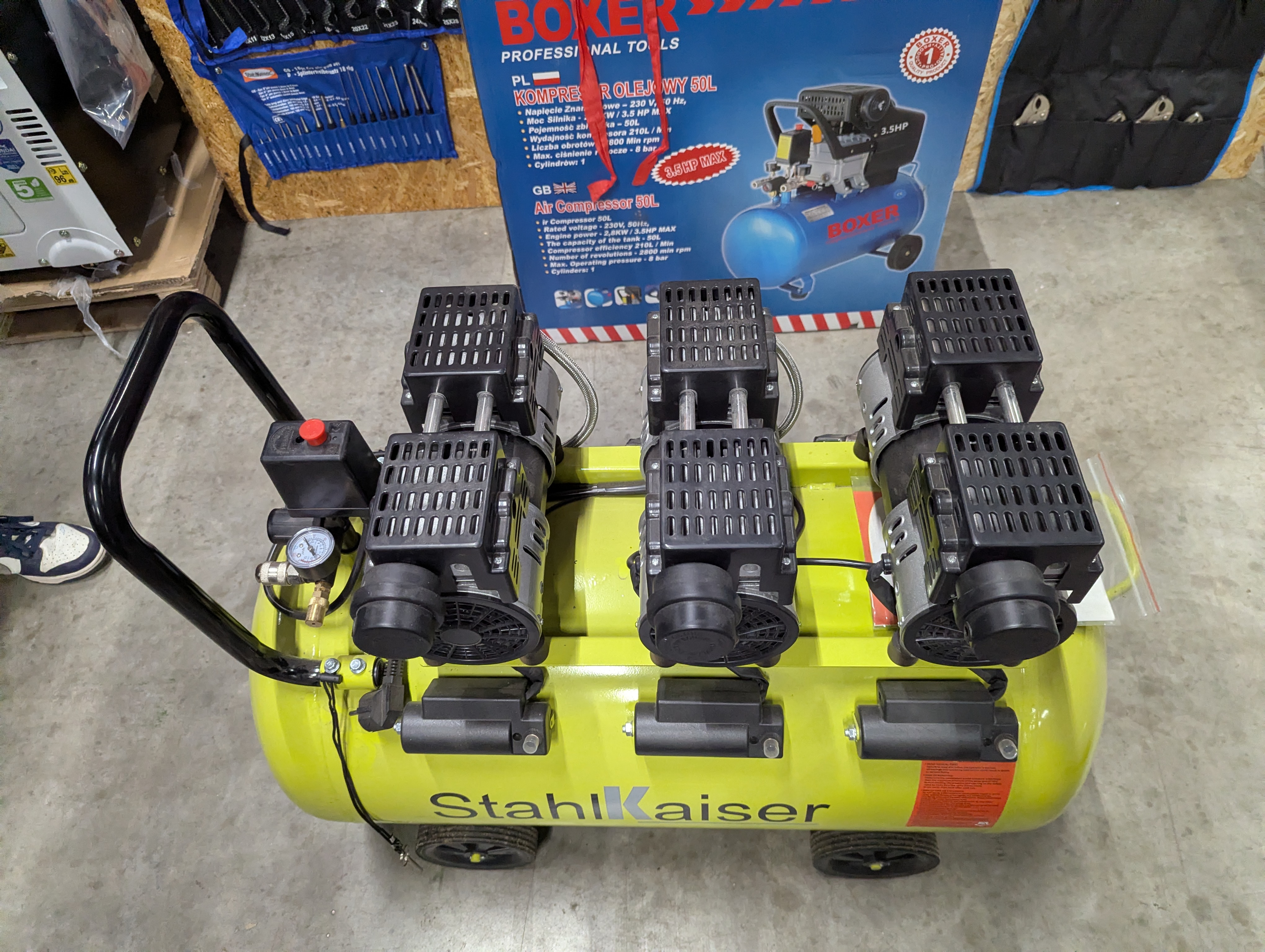 Selvom mærket Stahlkaiser ikke er så udbredt i danske søgeresultater som f.eks. Scheppach eller andre mærker, ligner den i specifikationer de populære ""Pro-Line Series"" af lydsvage, oliefri kompressorer, som findes på markedet.