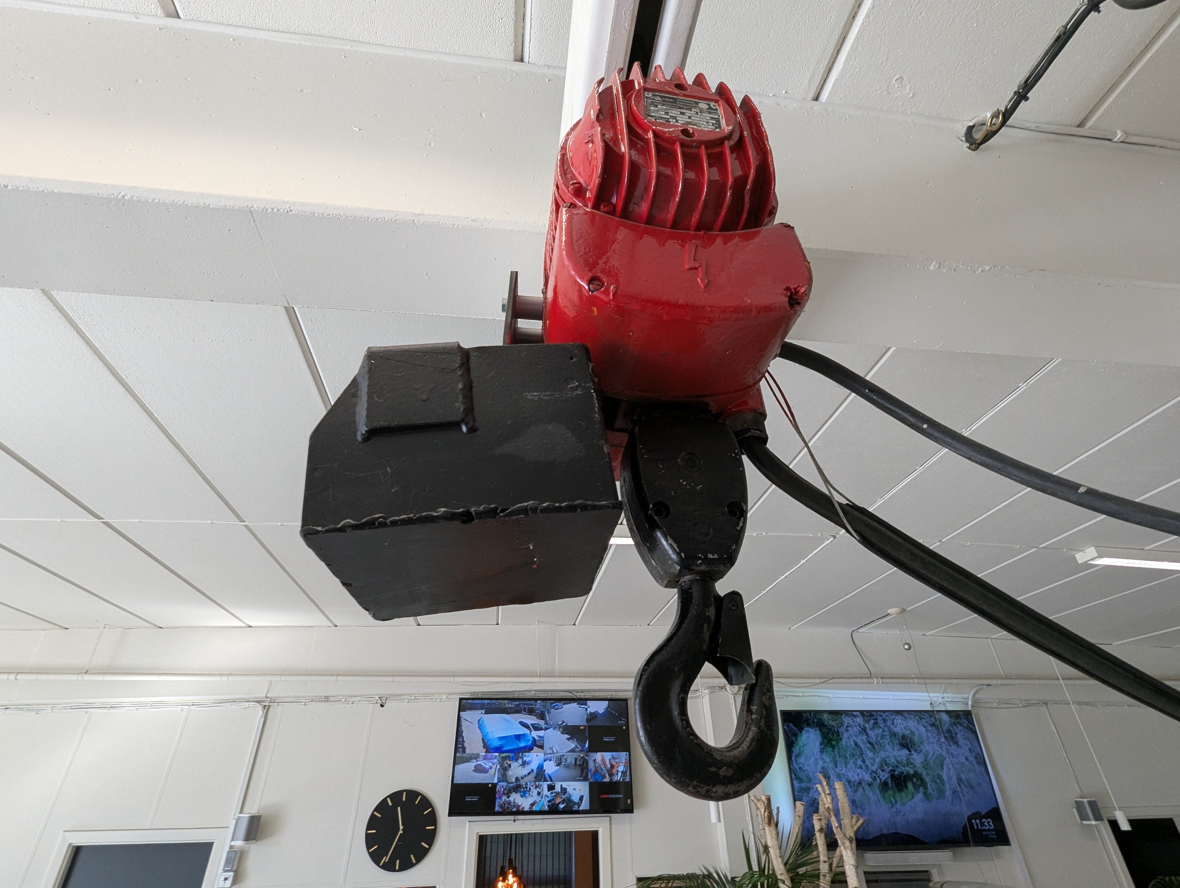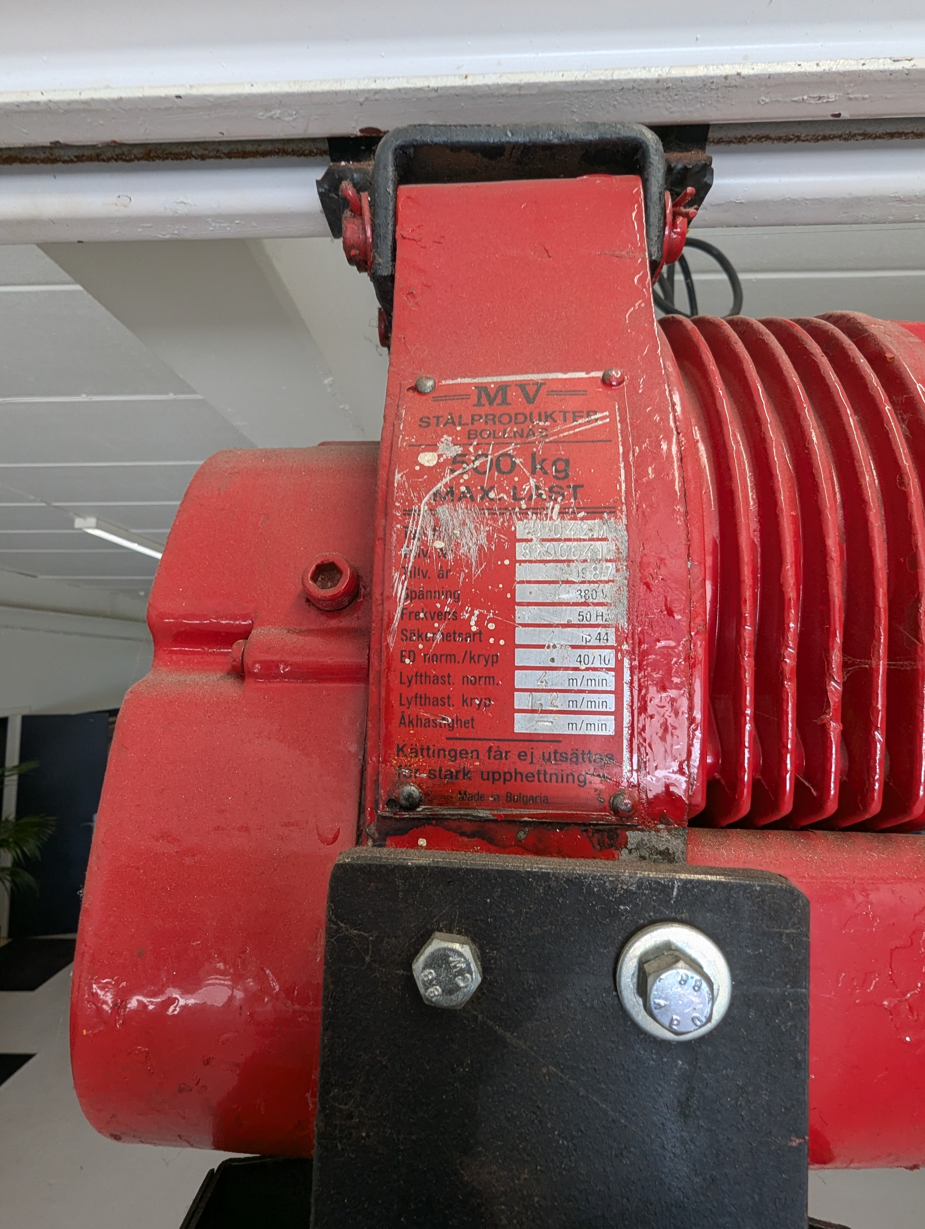 29. Treverskran med ca. 5 m. lang skinne i jern