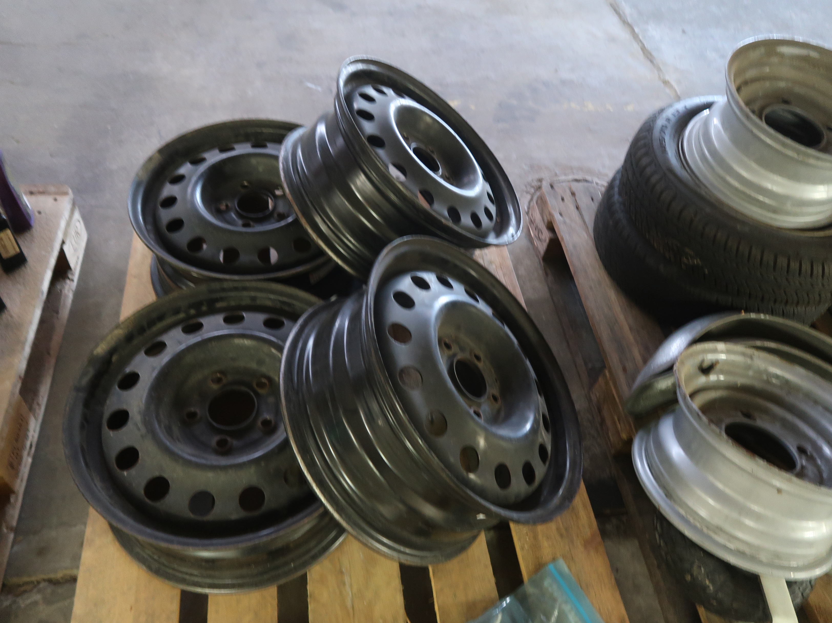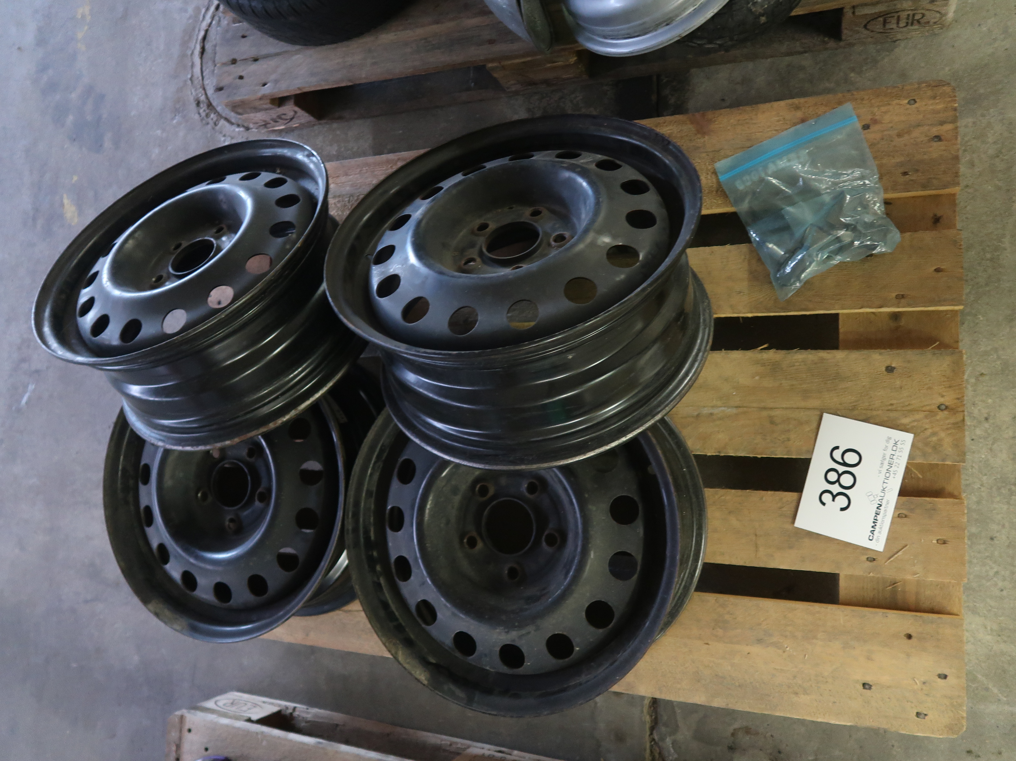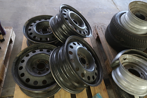 Fire stålfælge. Ø ca. 44 cm. B ca. 19,5 cm. Se foto.