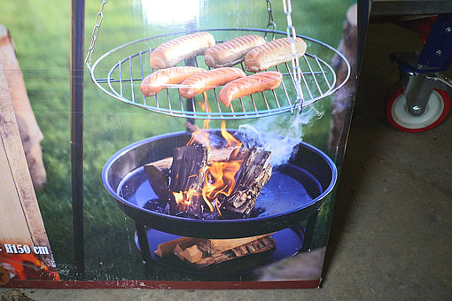 213. Bålsted med ildfad, rist m.m., Dangrill