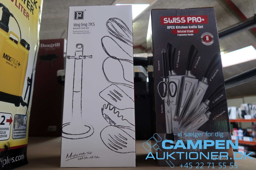 Knivsæt i drejefod + Ming Fing tilbehørssæt. Fragtfri forsendelse til brofaste øer i Danmark. (Kategori: Hus og have)