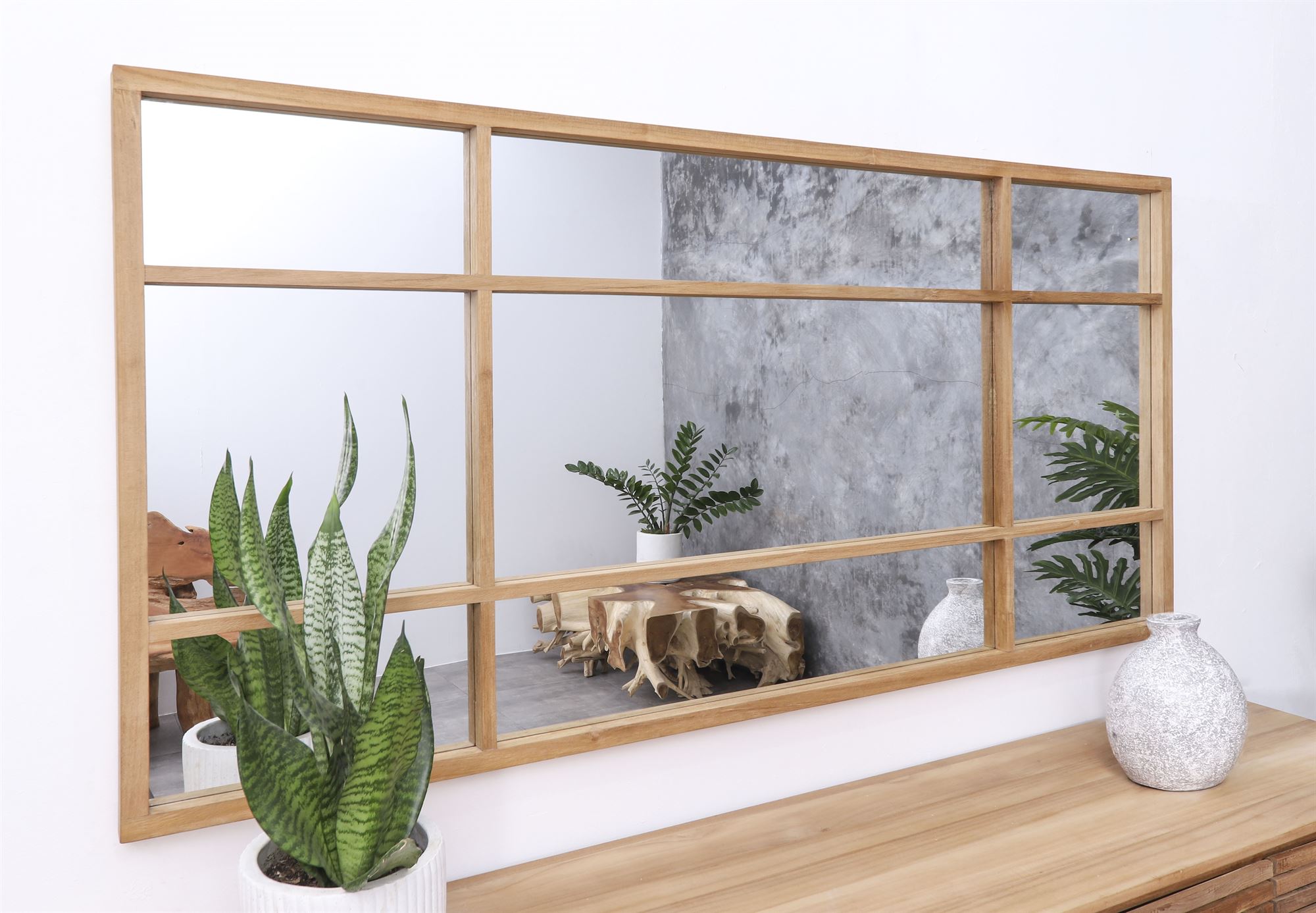 Spejl m. ramme i teak, rustik 180x90cm, A30B.Daneline spejl. Stort spejl med naturfarvet ramme i teaktræ med rustic finish. Stort spejl til ophæng på væg i naturfarvet ramme i teaktræ med rustik finish. Spejlet kan både stå på gulvet og hænges op vandret eller lodret. Se foto for alle mål. B 90 x H 180 x D 3 cm Vægt 28kg Flegt - Certificeret teak træ
