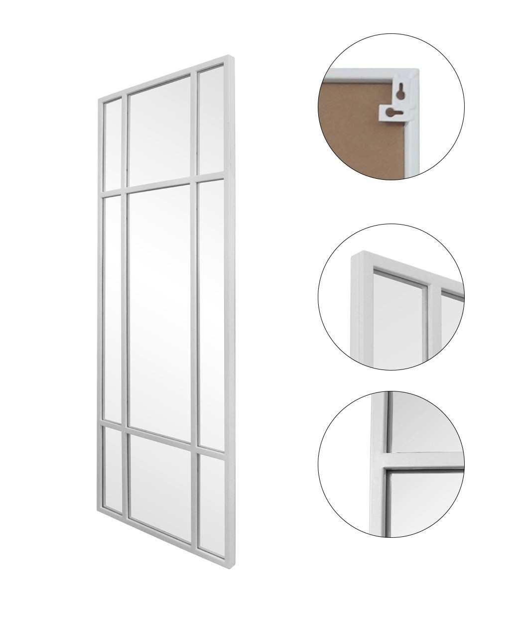 Spejl med hvidlakeret ramme i jern, GWM05W. Daneline spejl. Stort spejl med ramme i jern. Stort spejl til ophæng på væg med hvidlakeret jernramme. Spejlet kan både stå på gulvet og hænges op vandret eller lodret. B 60 x H 160 x D 3 cm. Vægt 18,5kg.