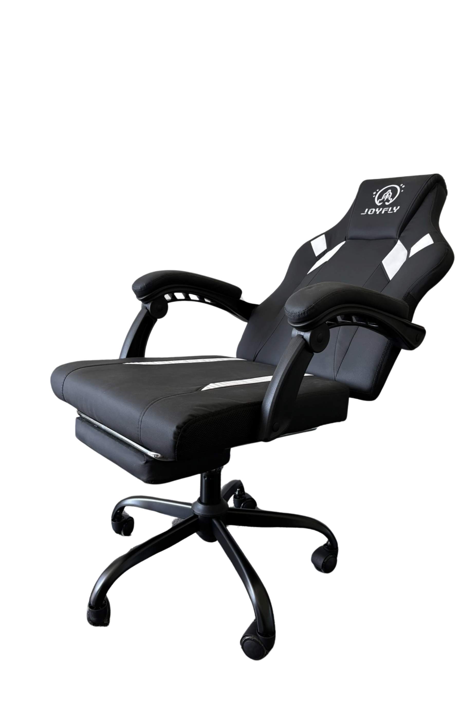 10. Gamerstol med indbygget fodskammel Sort/Hvid