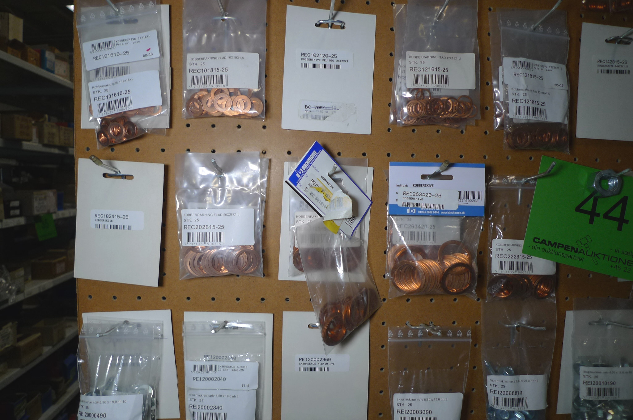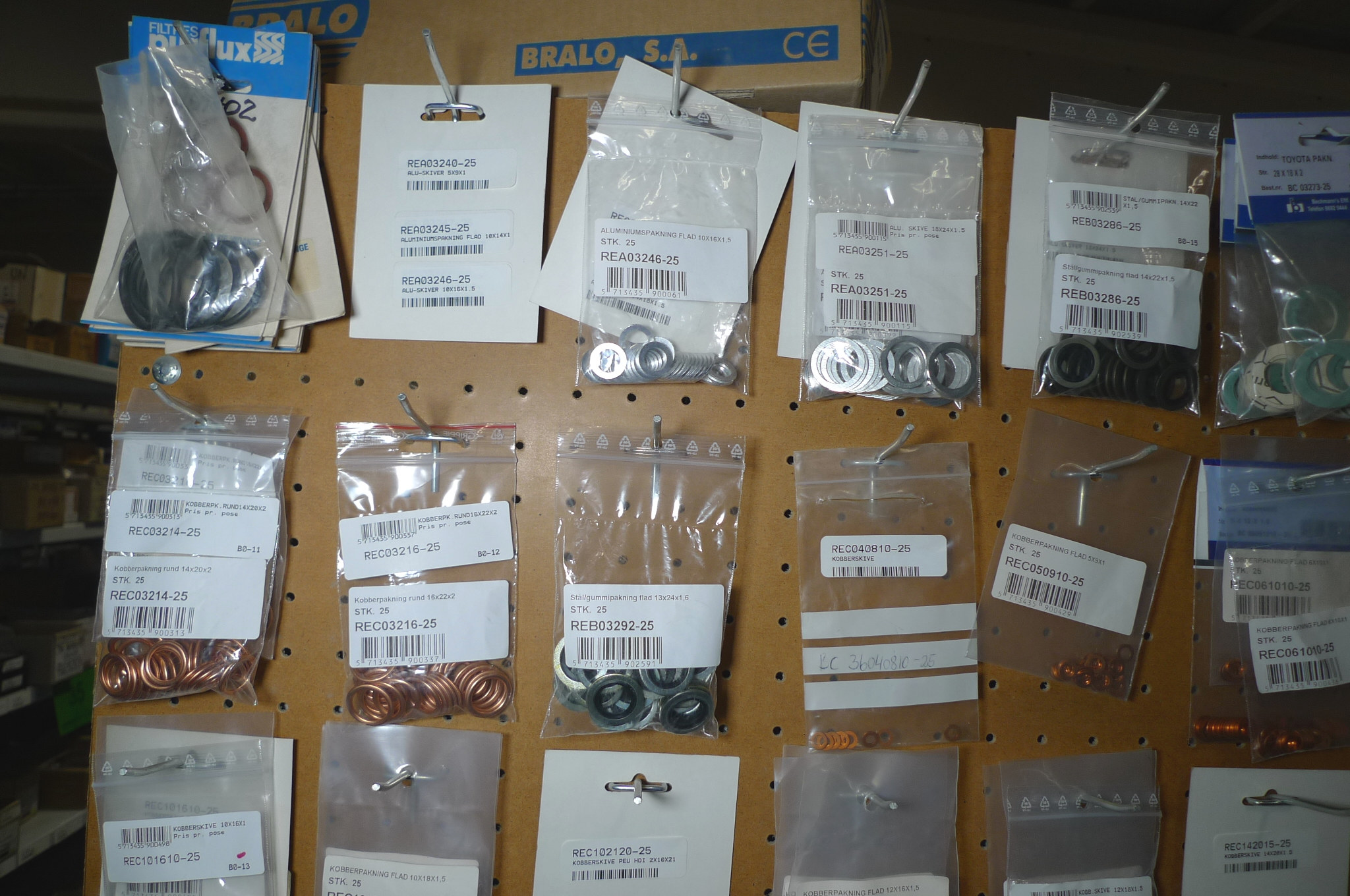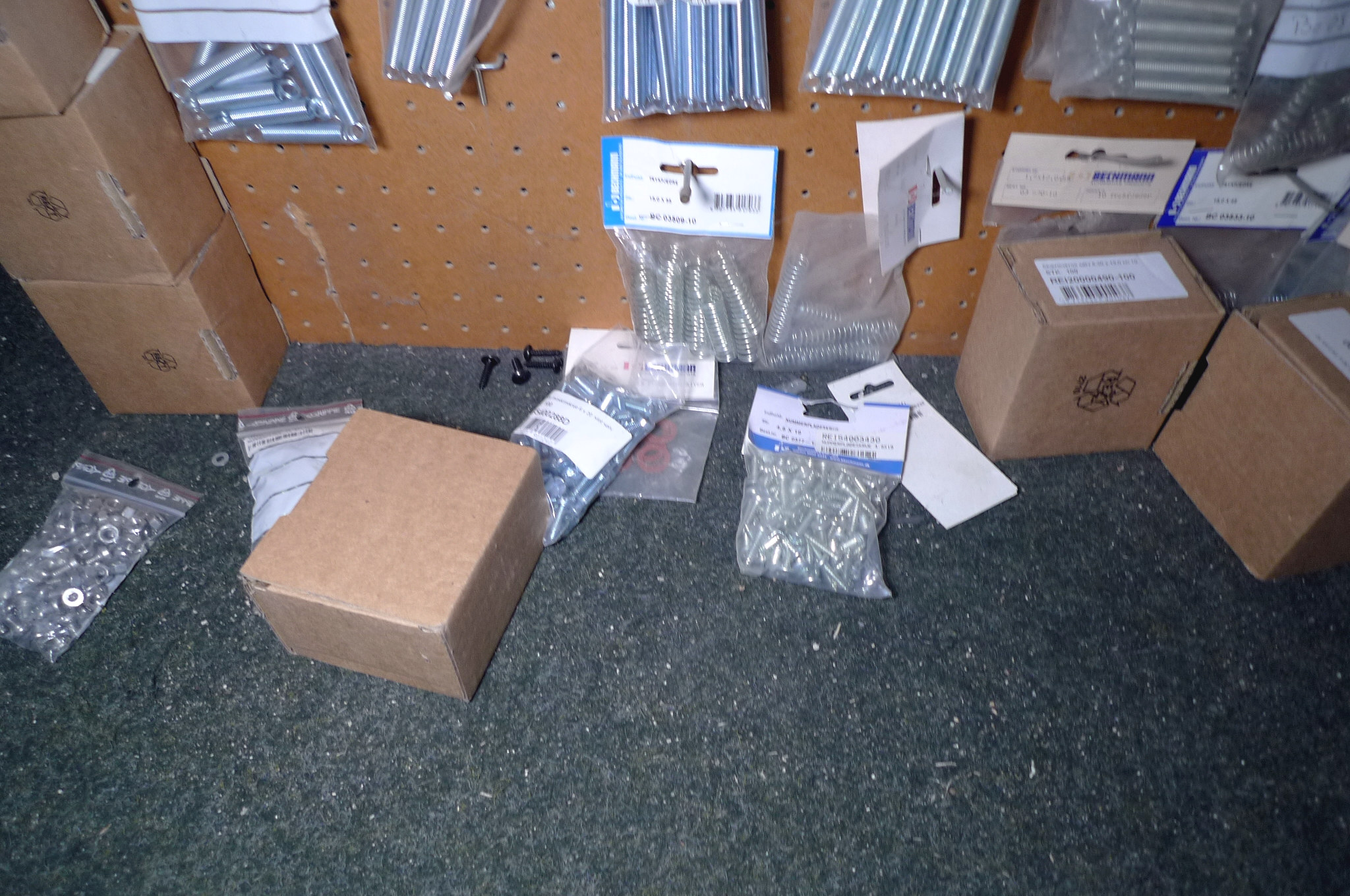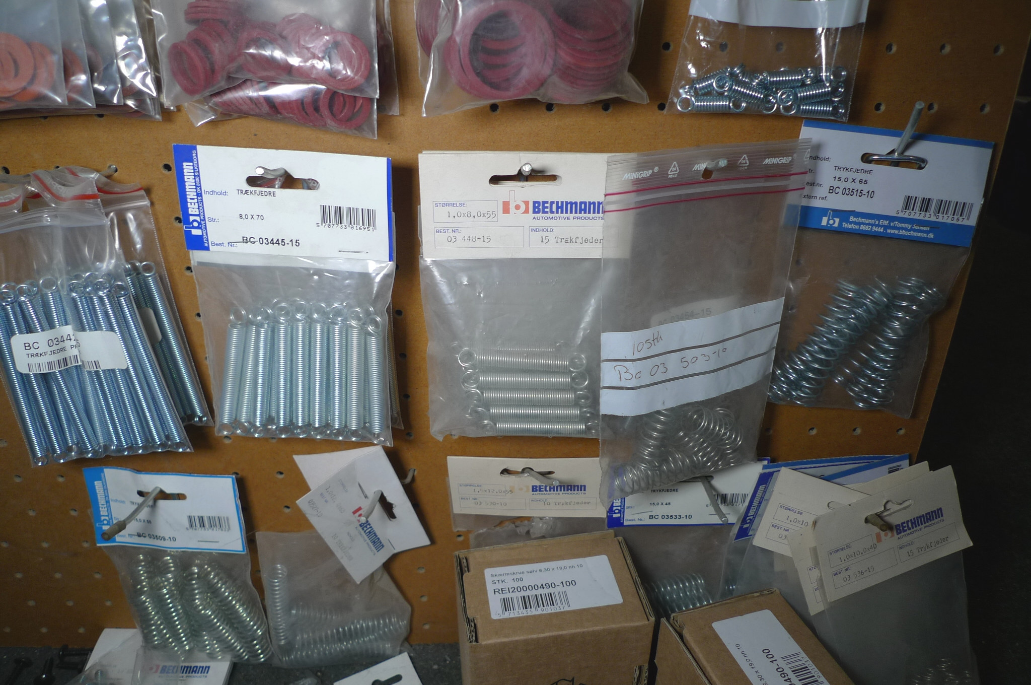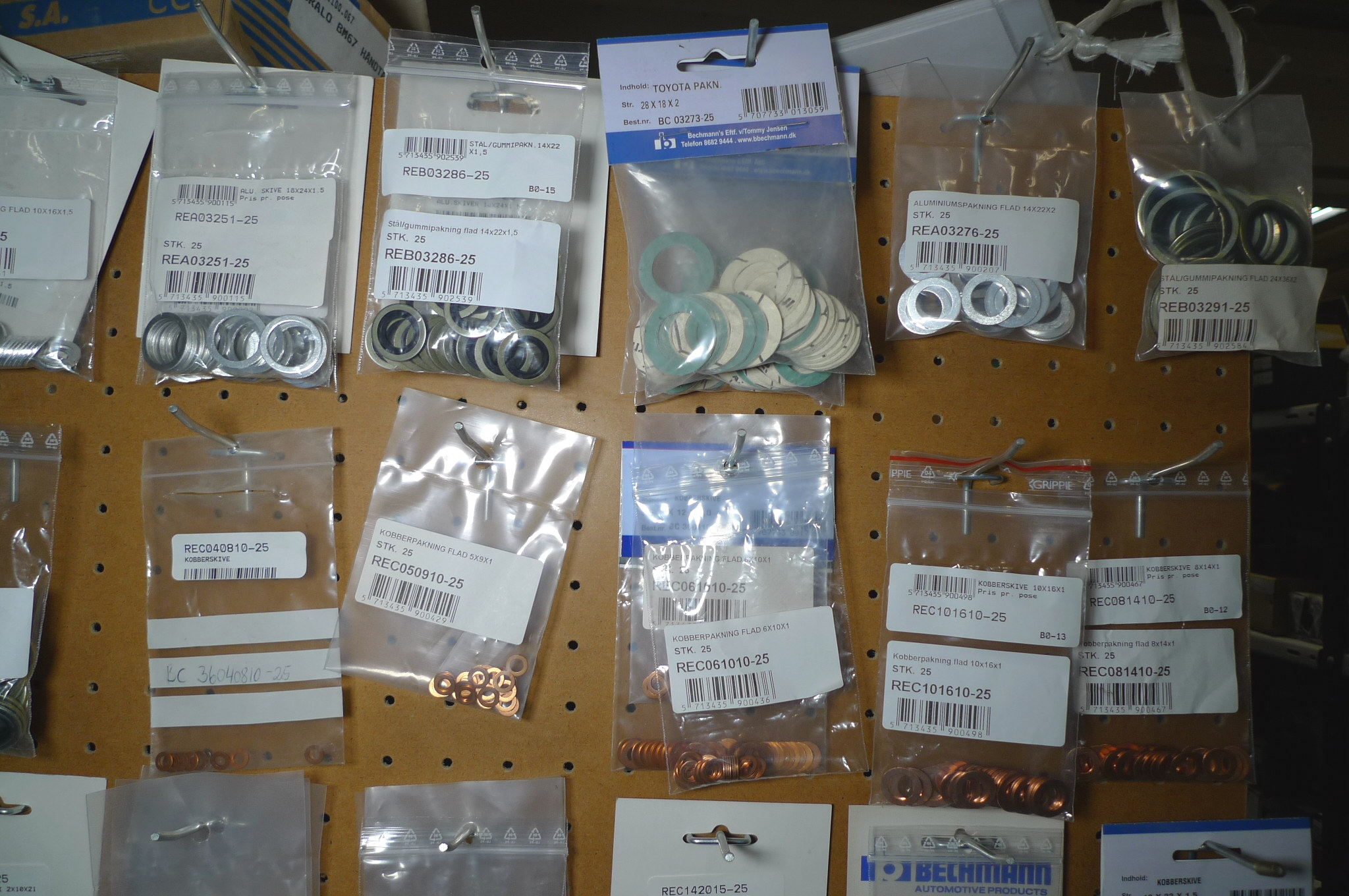 Kobber-/alu-skiver, selvskærende skruer, fjedre m.m. Ubrugt.