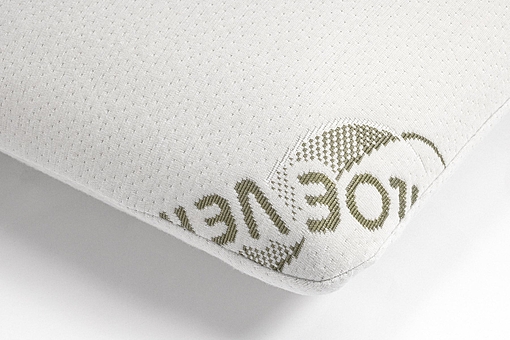 Betrækket på denne pude er lavet af 250 gsm dobbelt jacquardstrikstof. Desuden har det fået en Aloe vera-behandling. Det indre betræk er lavet af 100% polyester jersey på 90 gsm og fyldet af en 100% visco gel memory foam blok.