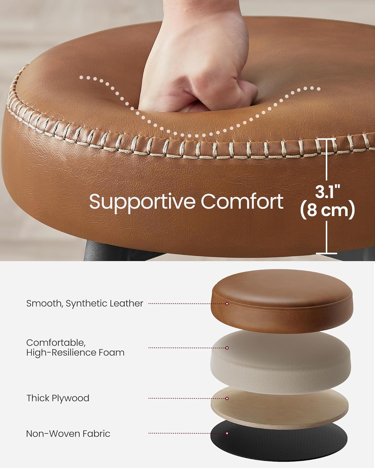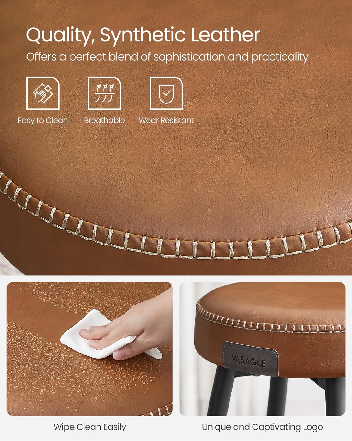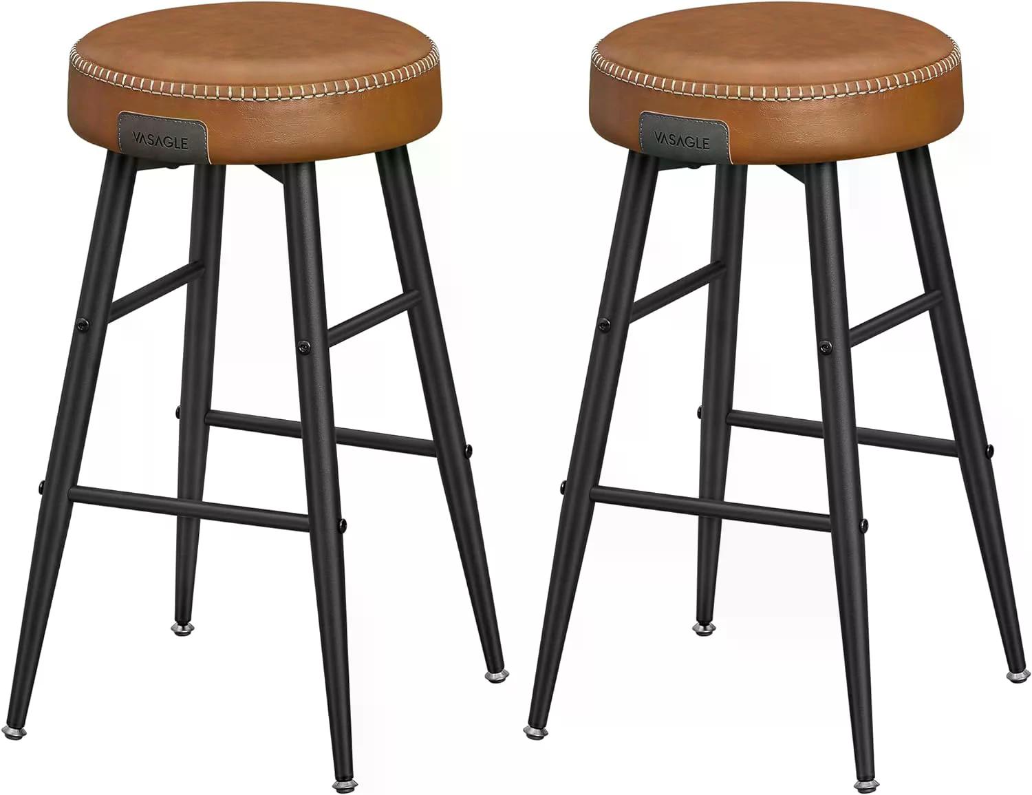 842. Sæt med 2 trendy barstole, imiteret læder, 63 cm høje, karamelbrun