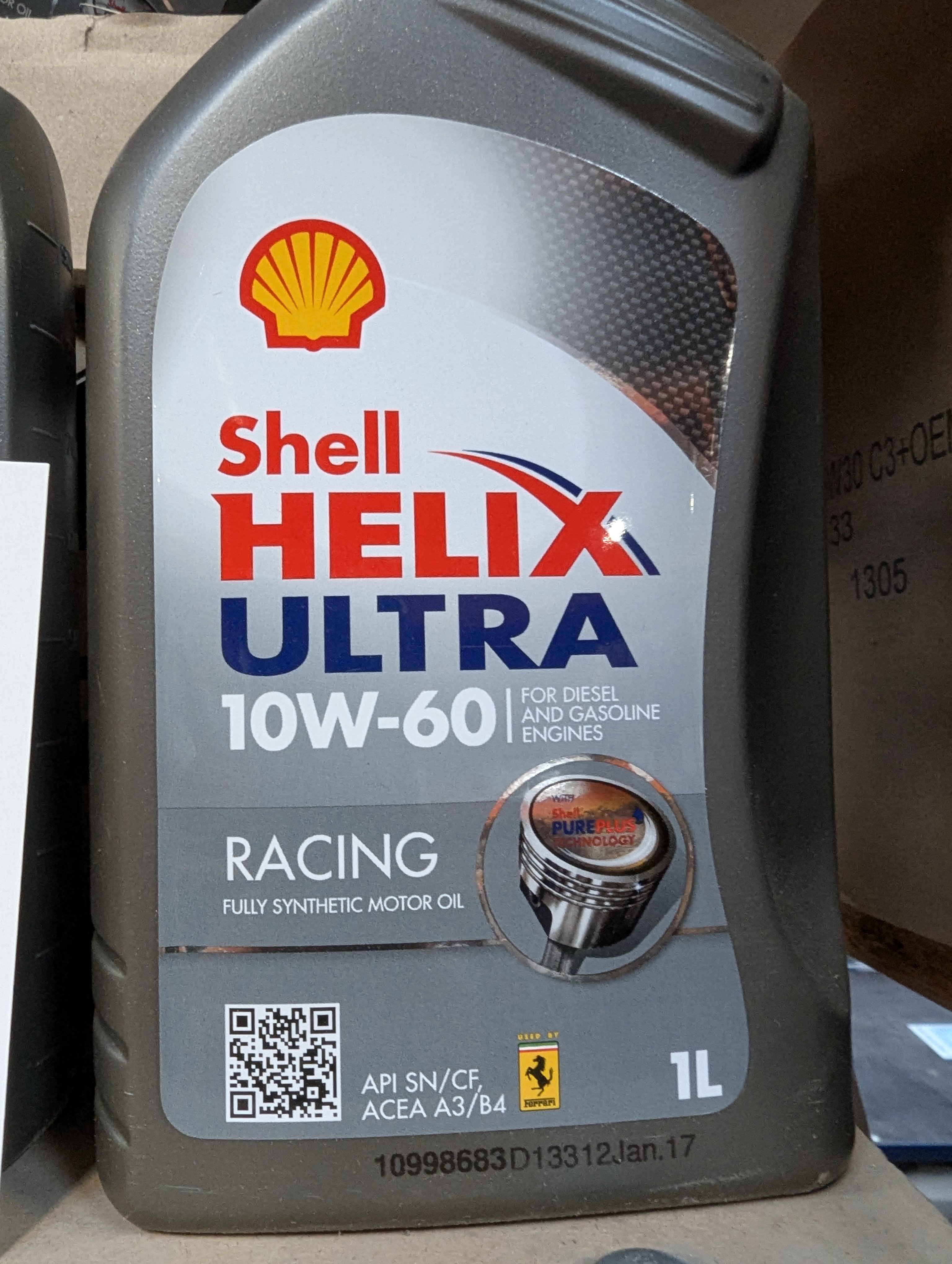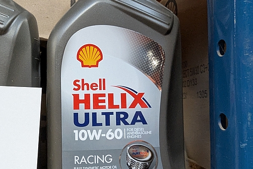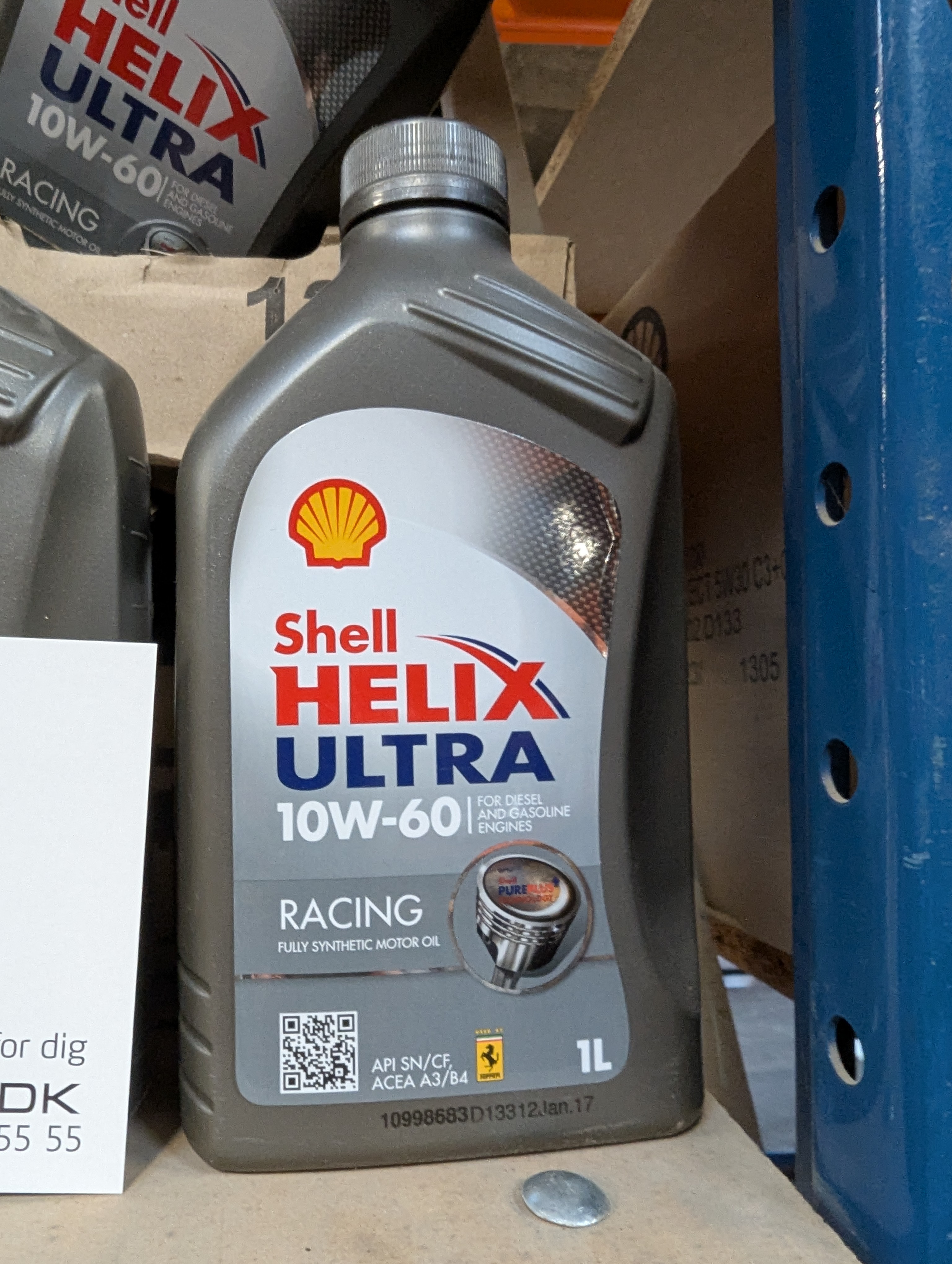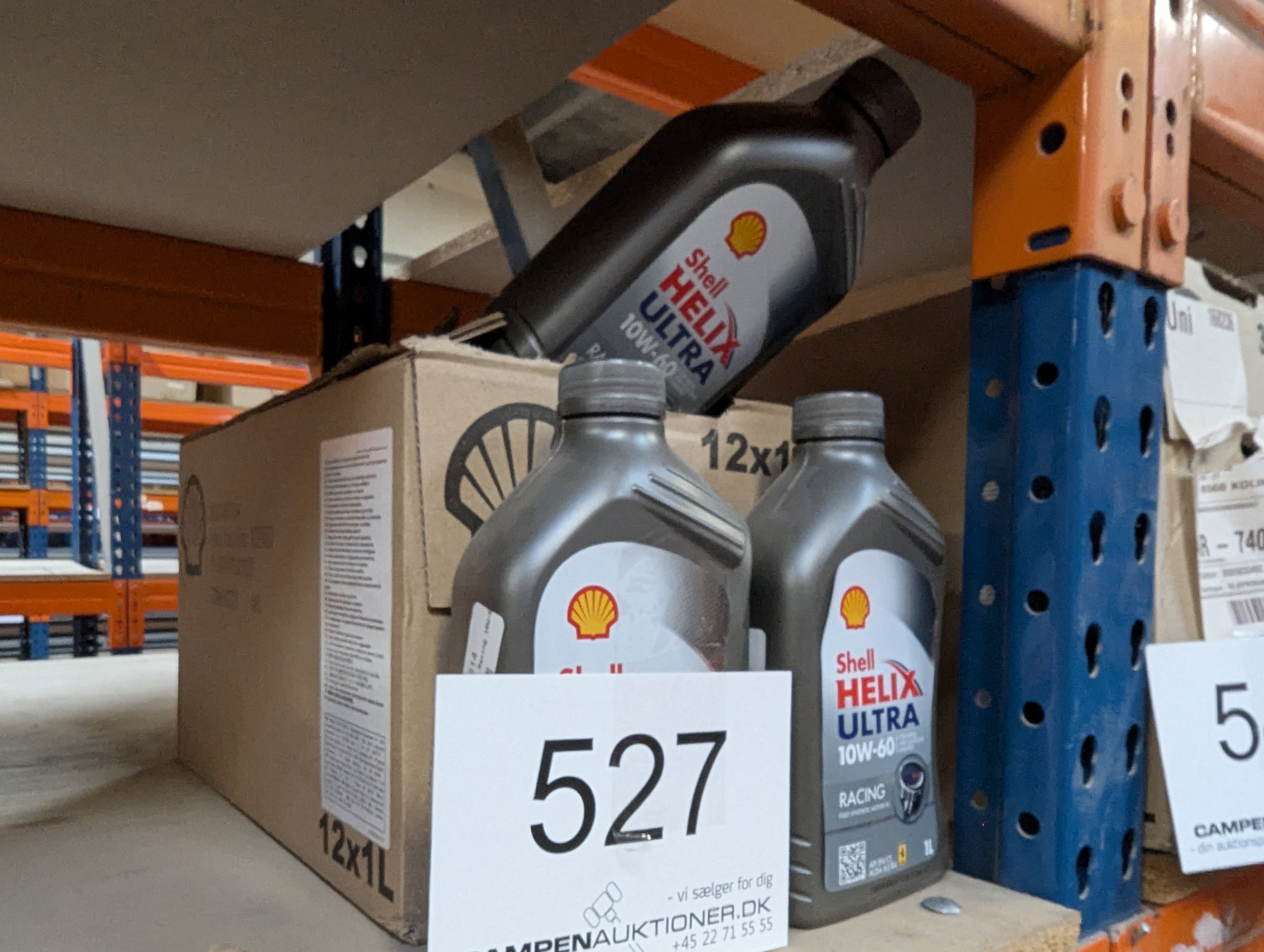 527. 14 dunke af 1 liter Shell Helix Ultra Racing motor olie, 10W-60