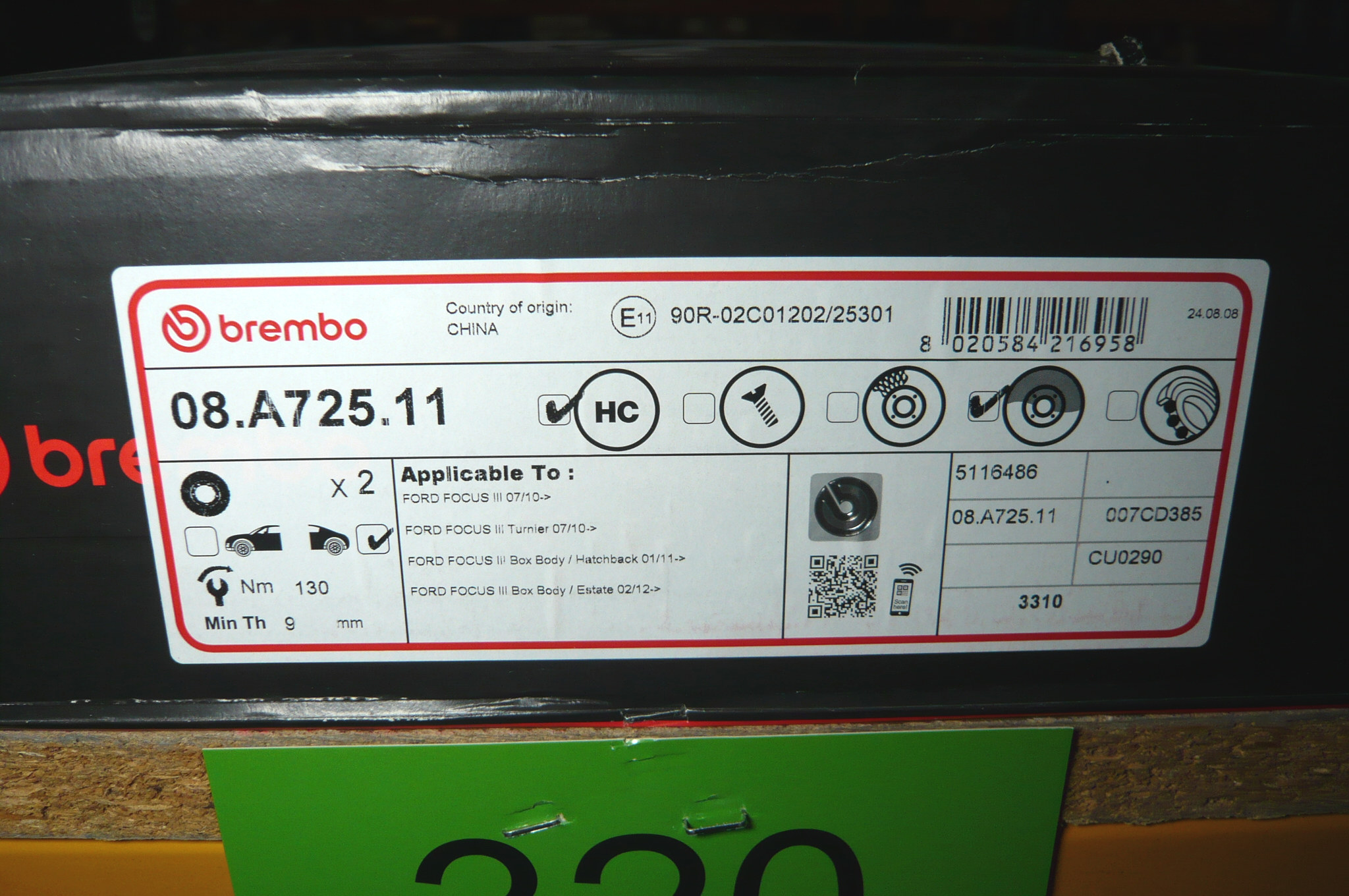 320. Et sæt Brembo, bagerste bremseskiver, Ford Focus m.fl.