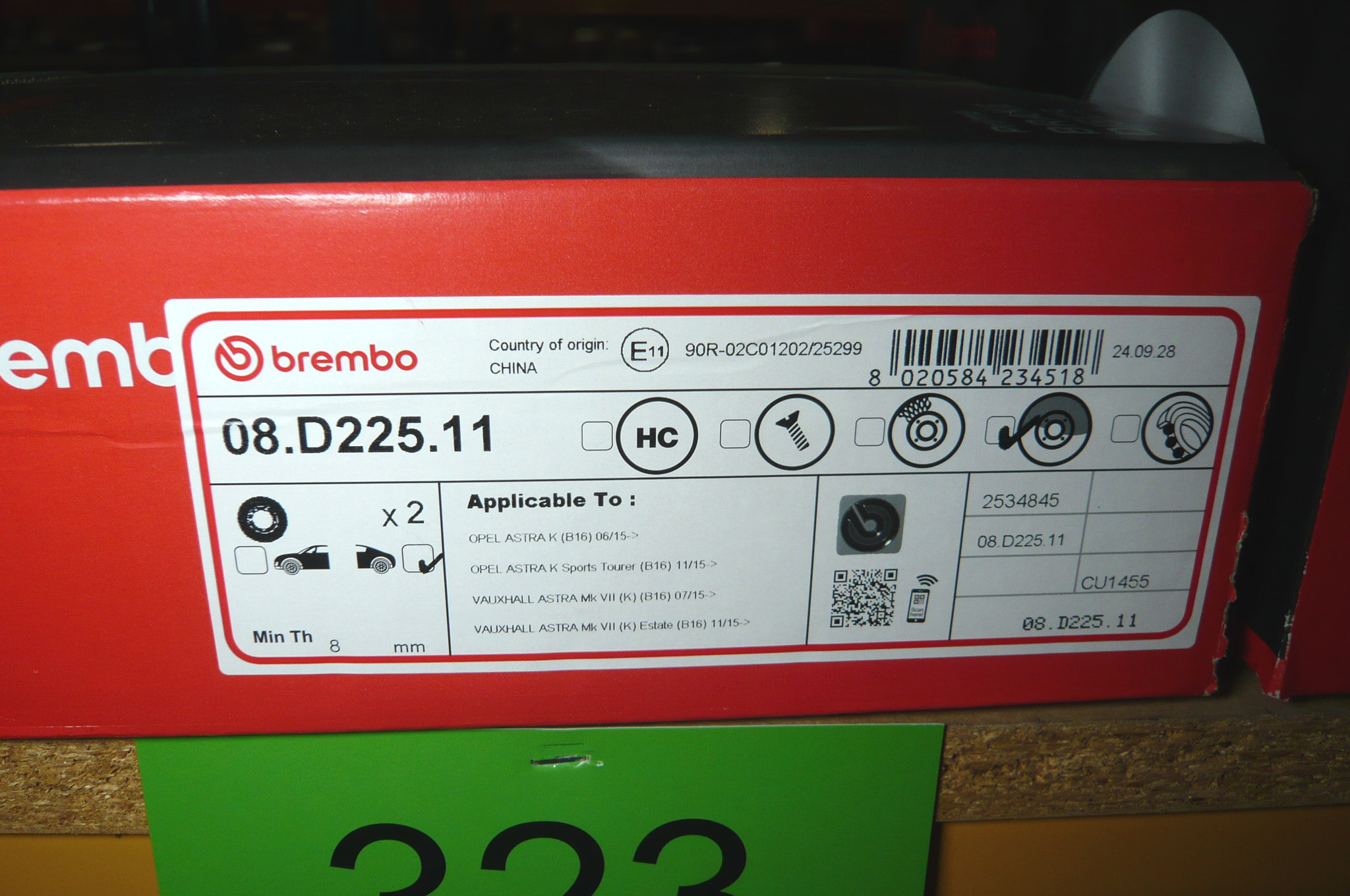 323. Et sæt Brembo, bagerste bremseskiver, Opel m.fl.