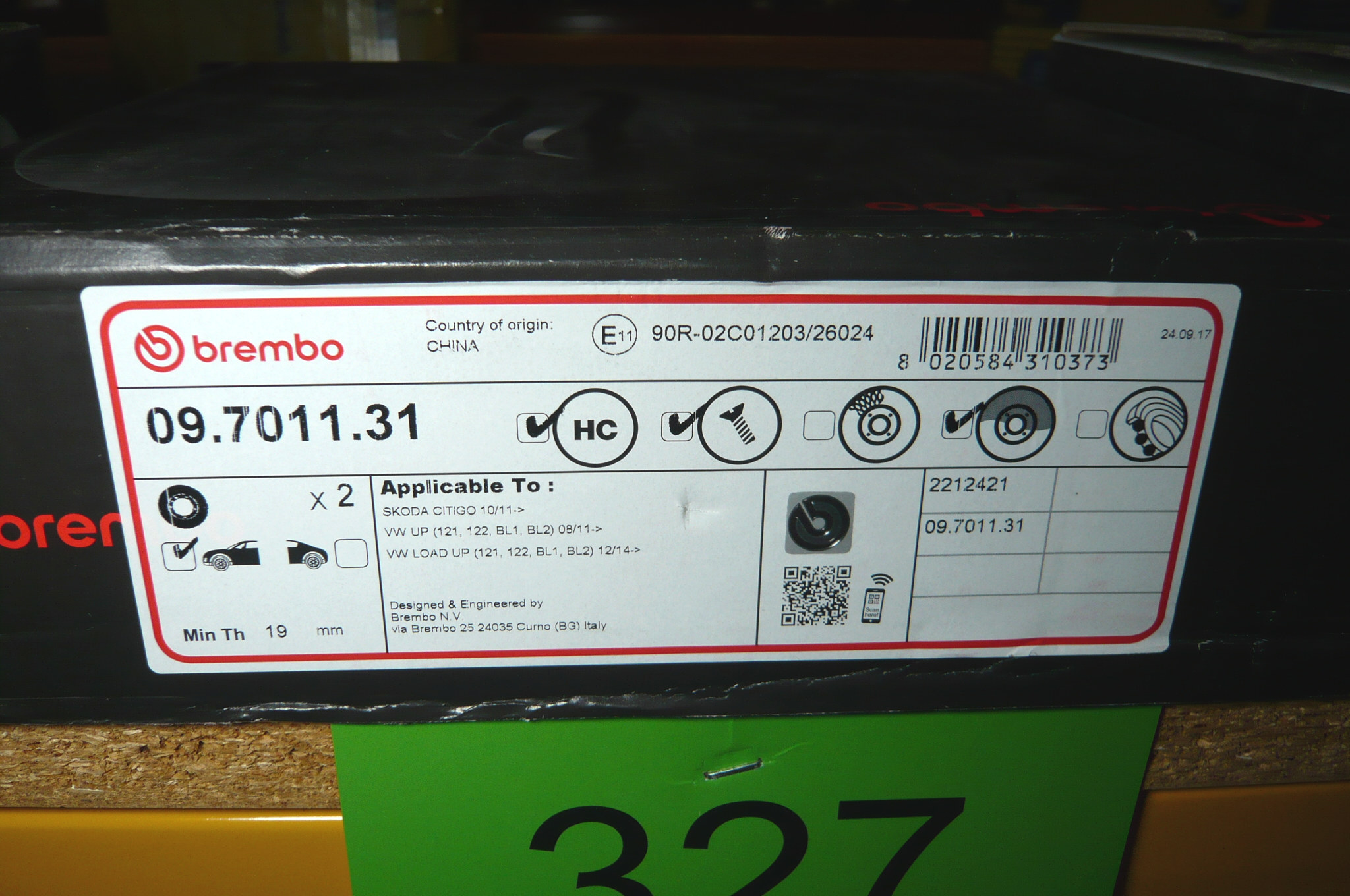 327. Et sæt Brembo, forreste bremseskiver, Skoda, VW m.fl.