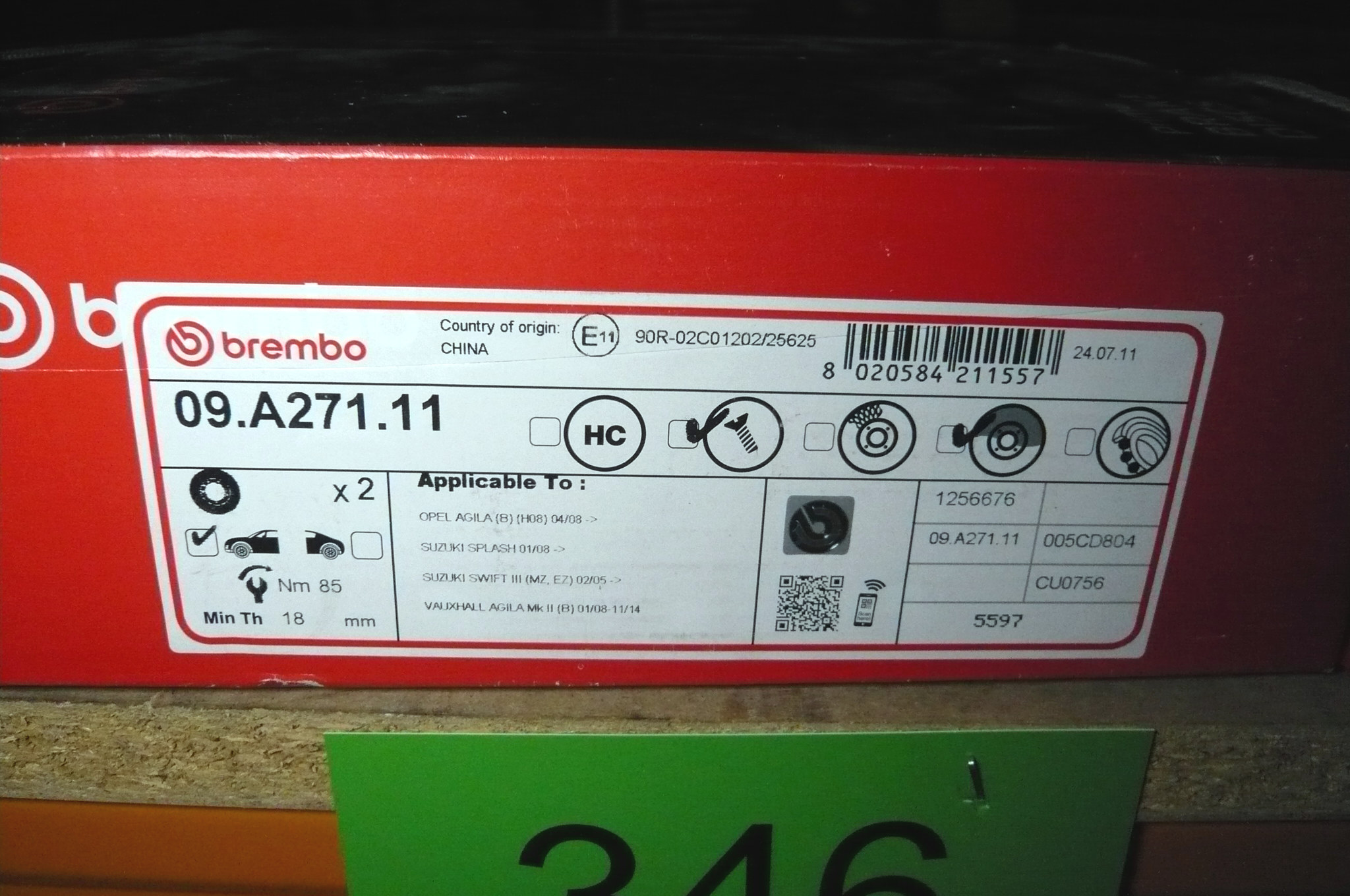 346. Et sæt Brembo, forreste bremseskiver, Opel, Suzuki m.fl.
