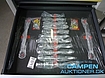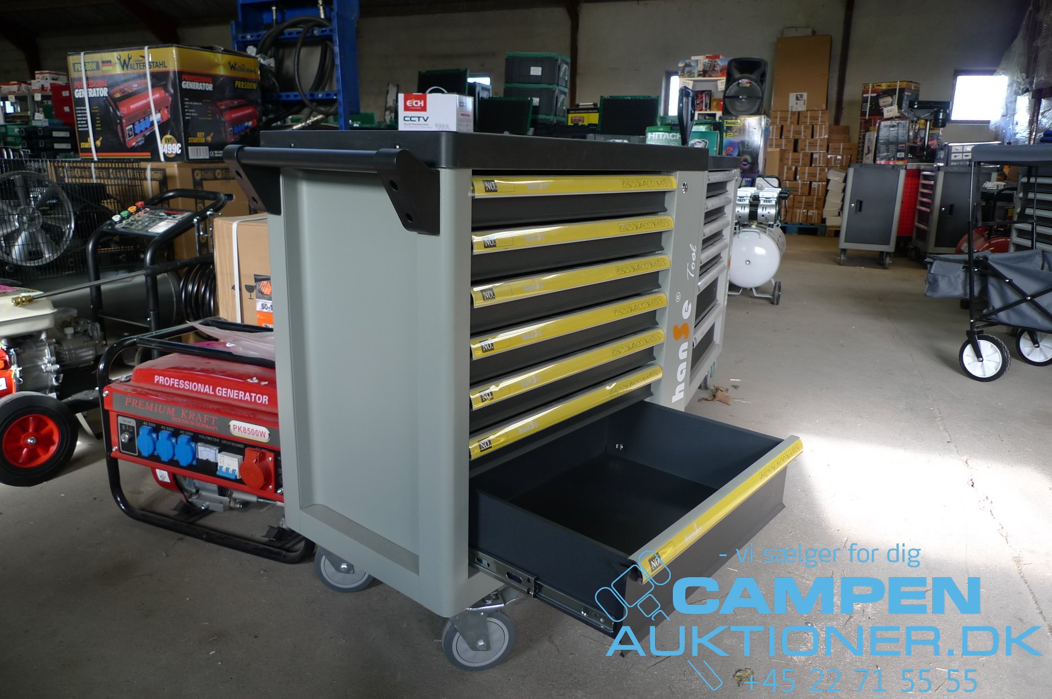 Værktøjsvogn, Hanse, 7 skuffer inkl. værktøj. Værktøjsvogn m/7 skuffer inkl. værktøj, HanseTools. Super fint sæt til alle fra gør-det-selv til professionelle. Med tre topnøglesæt, ringgaffelnøglesæt med skraldefunktion, tænger og skruetrækkere mv. Kvalitetssæt fra tyske hanSe Tools. Værktøjet er lavet af højkvalitets krom vanadium værktøjsstål. 1 høj skuffe til stort værktøj, alle kan aflåses og med låsesystem. Bordplade i polypropylenplast. Skab med sidelås (2 nøgler inkluderet). 4 hjul, 2 med bremser. Bredde: 77 cm. Dybde: 46 cm. Højde 90 cm. Vægt 70 kg.